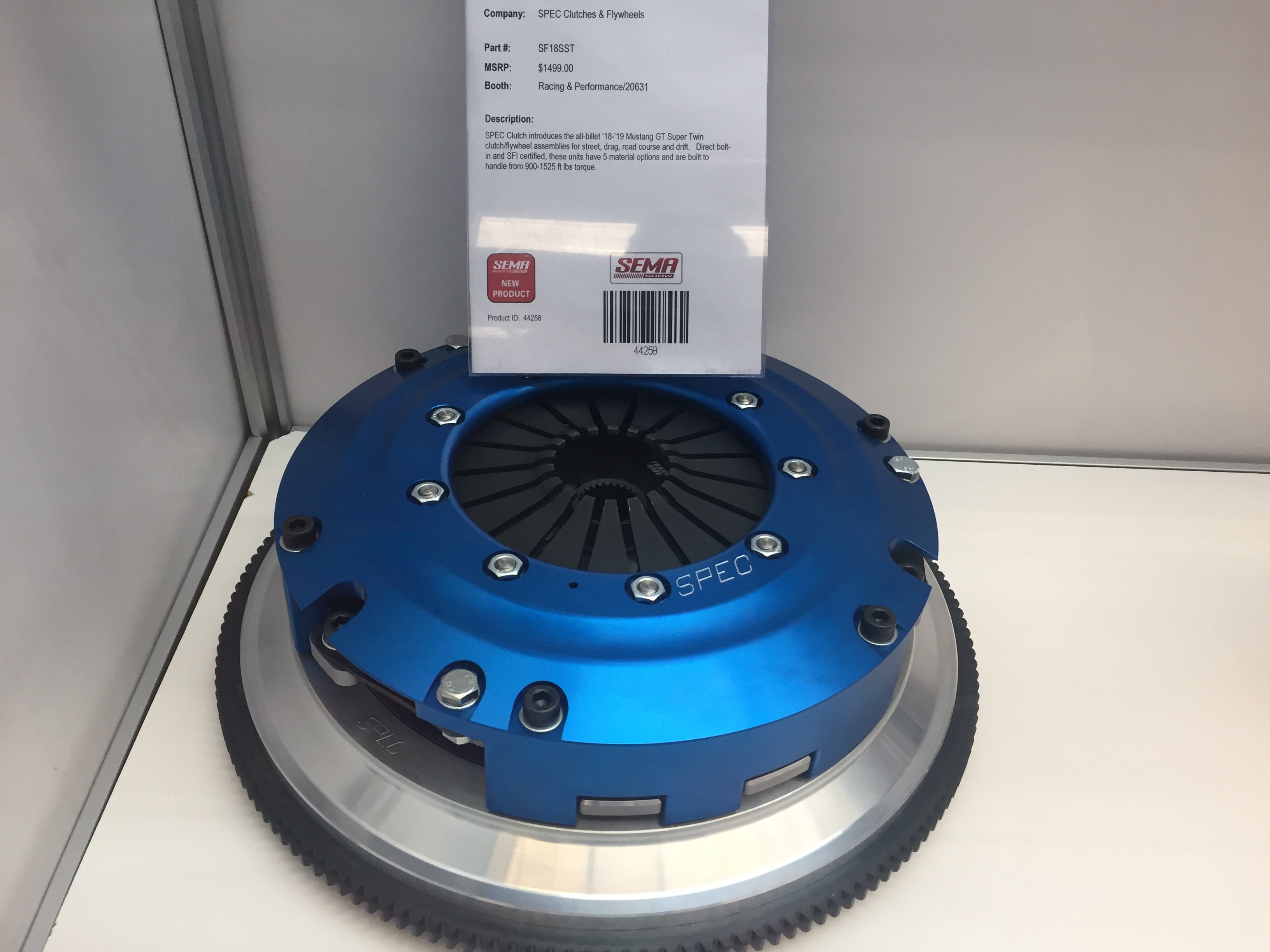 SPEC Clutch has introduced the all-billet 2018-19 Mustang GT Super Twin clutch/flywheel assembly for street, drag, road course, and drift. Direct bolt-in and SFI-certified, these units have five material options and are built to handle up to 1,525 ft.-lbs. of torque.