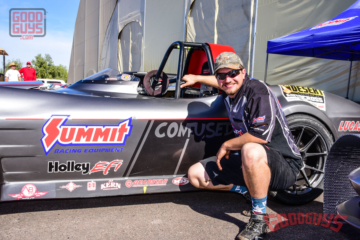 South Dakota’s Jared Leisinger, 20, dominated the PRO class taking home event wins in Raleigh, Texas, Lexington and Charlotte. In addition to winning the 2018 PRO Class Championship, Jared drove his Summit Racing sponsored ‘64 Corvette roadster to third place in last weekend’s Duel in the Desert. He defeated his brother Josh in the season-long points race 196 to 153. Powered by a Holley EFI-equipped LSR V8 prepped by Warren Johnson, Leisinger’s topless ‘Vette runs a Gear Star transmission, a custom chassis by Cale Kern, ABCO Performance shocks, Forgeline wheels, Wilwood brakes and Kumho Tires. Leisinger is joined on the Summit Racing team by his brother Josh’s ‘64 Corvette coupe and his mother Karen’s ‘70 Camaro.