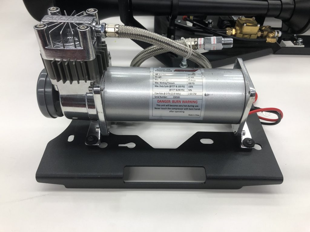 This system for late model GM 1500 trucks will help you grab some attention. It’s a complete bolt-on design and includes Kleinn’s Demon 157 8-decibel train horn, 3-gallon tank, 200 PSI waterproof air compressor, and quick-connect tire inflator with storage bag.