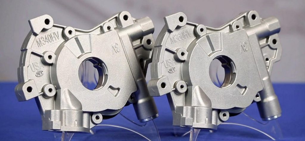 A high-pressure, high-volume pump has both larger gears and a stiffer bypass spring. These pumps are only required for high-performance race engines.