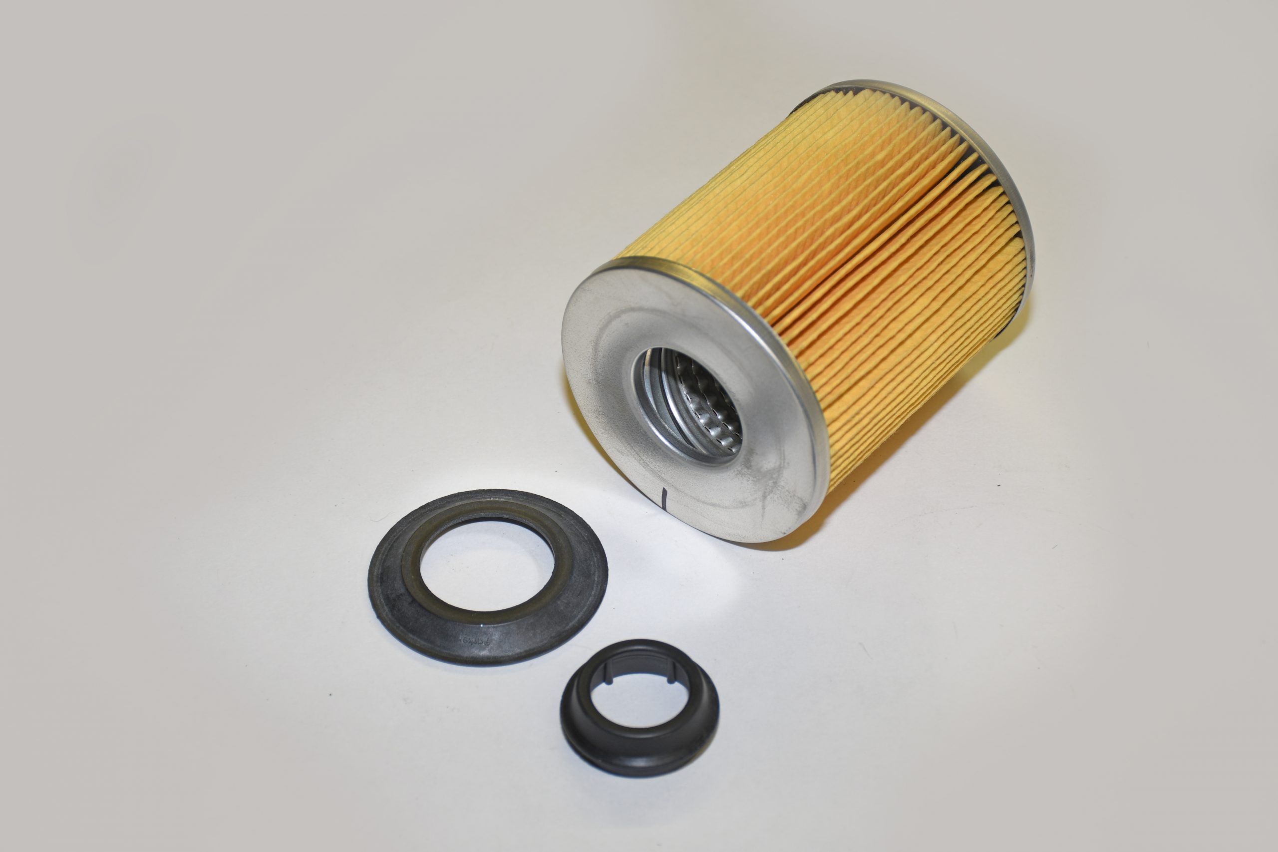 Oil is pumped from the engine oil gallery through a series of holes located in the filter baseplate (sometimes called a “tapping plate”). From here, oil is forced between the wall of the metal canister and the pleated filter element. Each end of the internal filter medium is fitted with metal support caps (AKA discs).