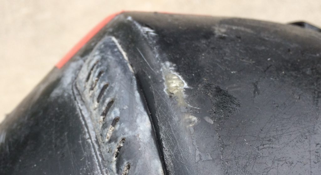 But beyond regular degradation, helmets can be subject to abuse that can reduce their ability to protect your noggin’ in a crash. Even simply dropping your helmet on a concrete driveway can compromise its protective shell or internal compression lining. Regularly inspecting your helmet can spot potential damage before it causes harm.