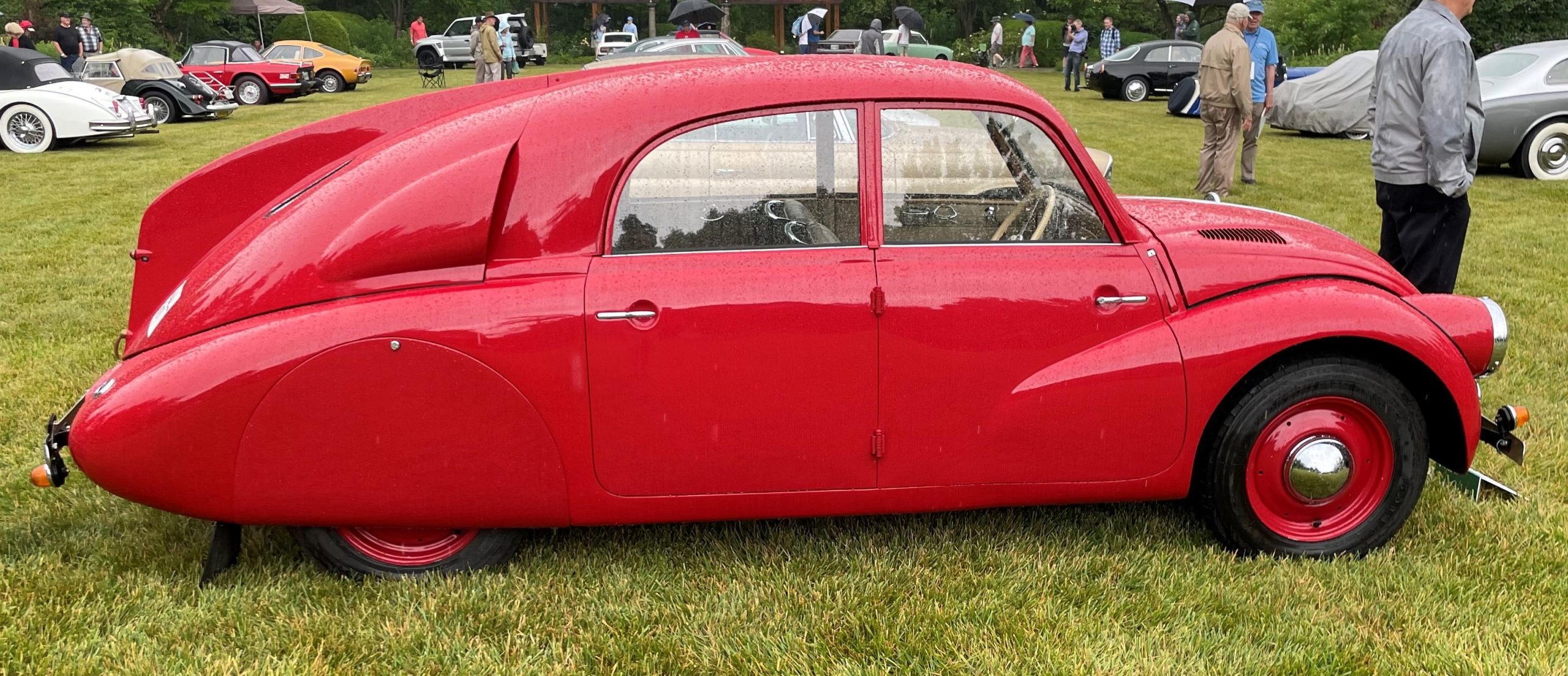So far, most of these spoilers and wings have been for racing and high-speed performance (or at least the illusion of such). But the rudder/skirt/scoop array on the Czech-made Tatra T-97 was tailored more towards economy and fuel efficiency—particularly important considering the T-97 was powered by a 1,800cc flat four making a mere 40 hp.