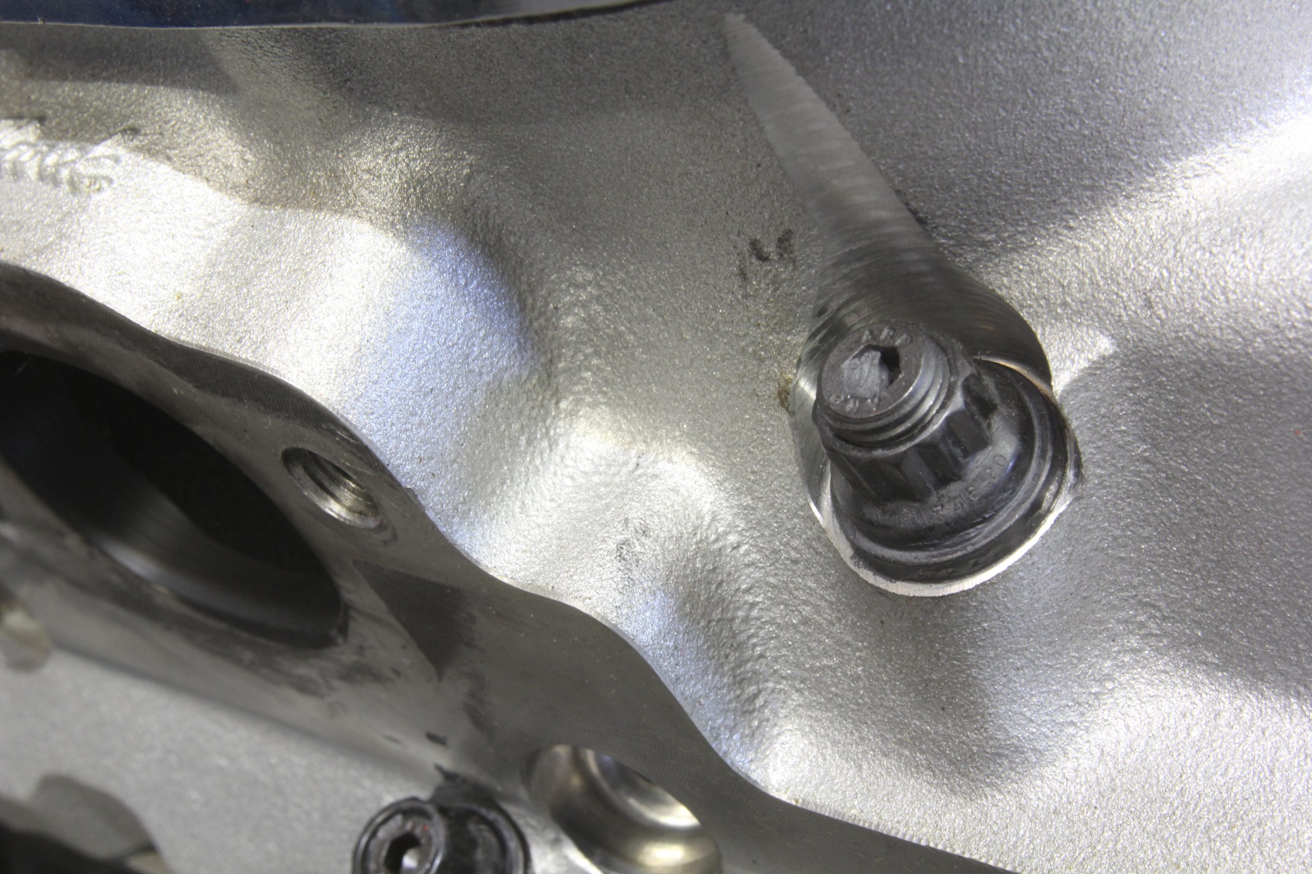 You didn’t mention this, but it’s also entirely possible that if the engine assembler did not put sealant on the threads then he probably also did not place lube under the bottom of the head bolt. This is important because roughly 50 percent of the torque required for a bolt of this type is used up in overcoming the friction between the back side of the head bolt and the head. If the head bolt is dry, this radically increases the friction in this area.
