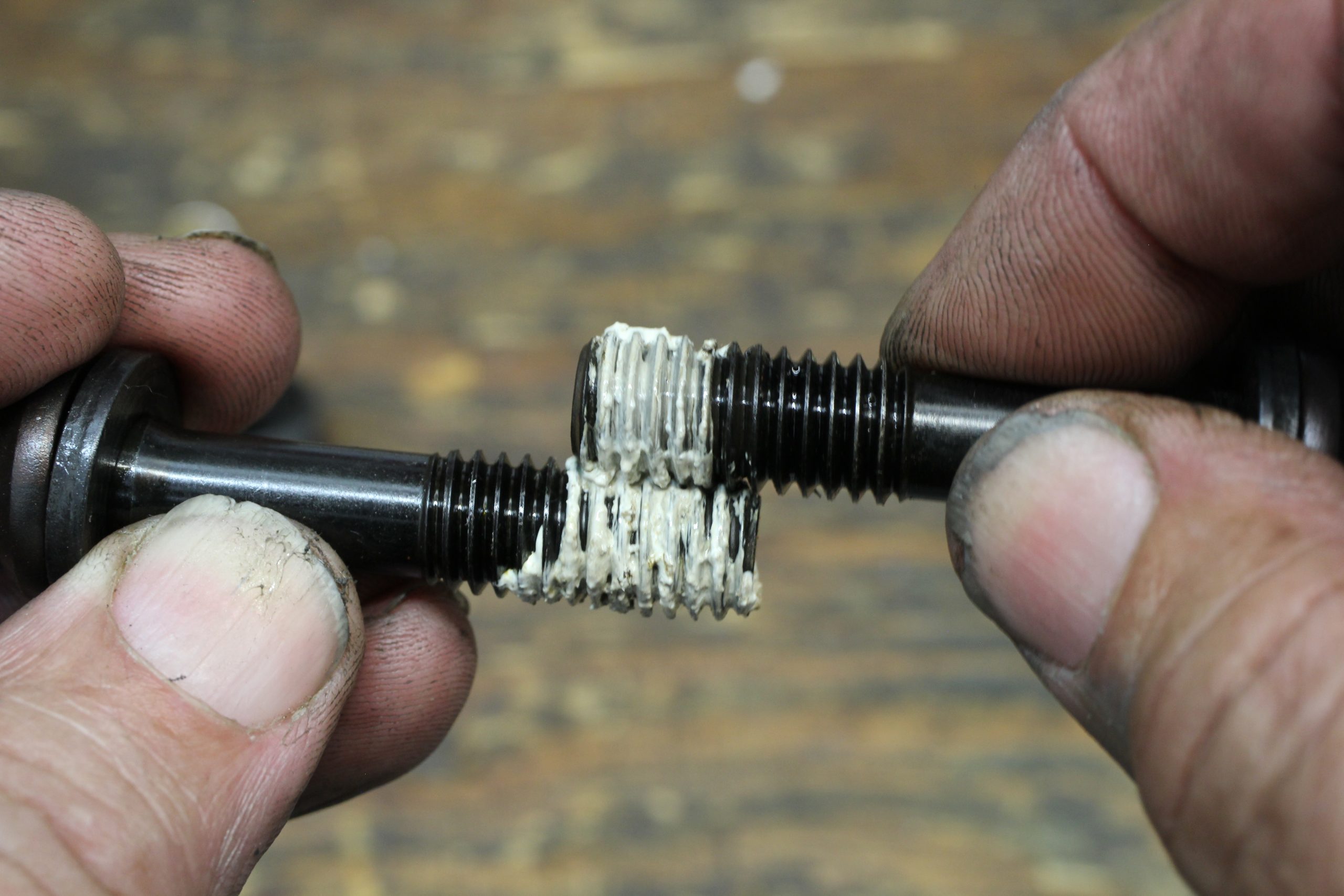 This may not sound all that important, but an increase in friction here along with dry threads increases the friction in both areas. When torqued to the specification—let’s say 65 ft.-lbs., this means that far less tension is applied to the bolt to create the proper clamp load on the gasket. It’s difficult to offer a number but the clamp load on the gasket could be reduced by 20 to 30 percent because of this oversight.