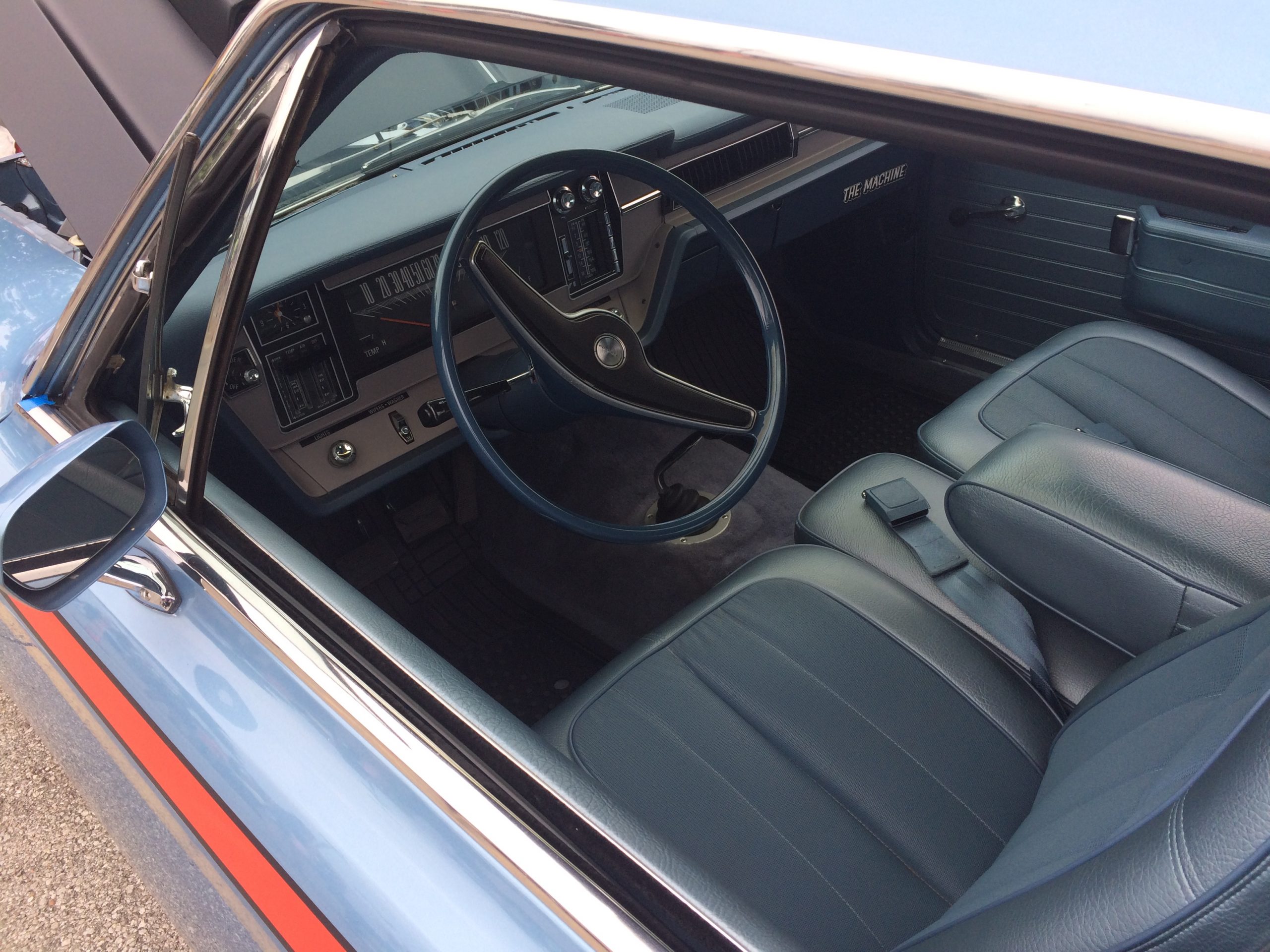The particular Machine you see here caught our eye at the 2021 Goodguys Summit Racing Nationals because it’s wearing a rare factory Bayshore Blue paint job instead they typical AMC Frost White—and better yet, it’s wearing the iconic Machine stripe package.