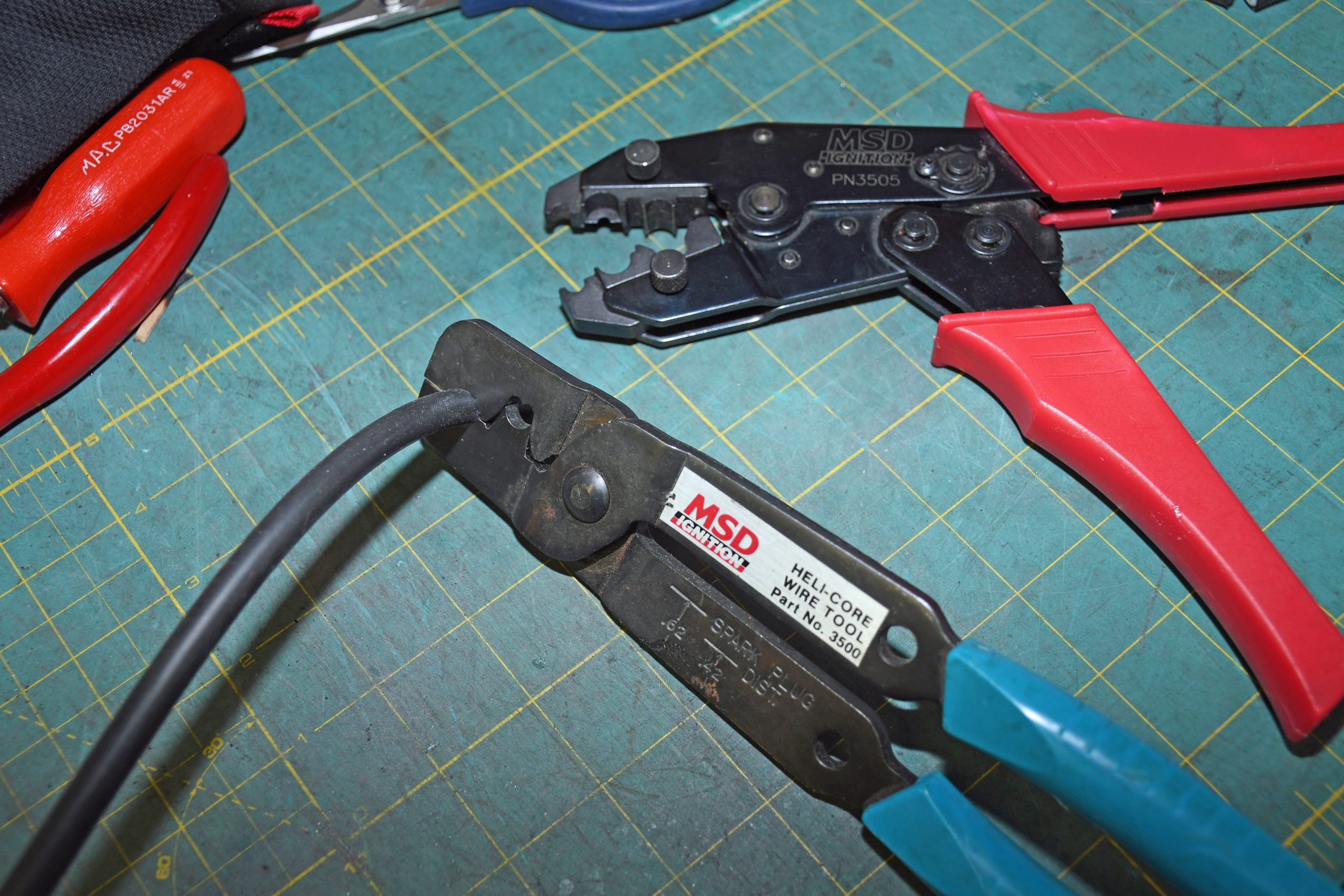There are a number of ways to cut ignition wire to length. The writer prefers this old MSD tool for cutting jobs. (Image/Wayne Scraba)When it comes to sleeves, a set of good sharp scissors work well. (Image/Wayne Scraba)