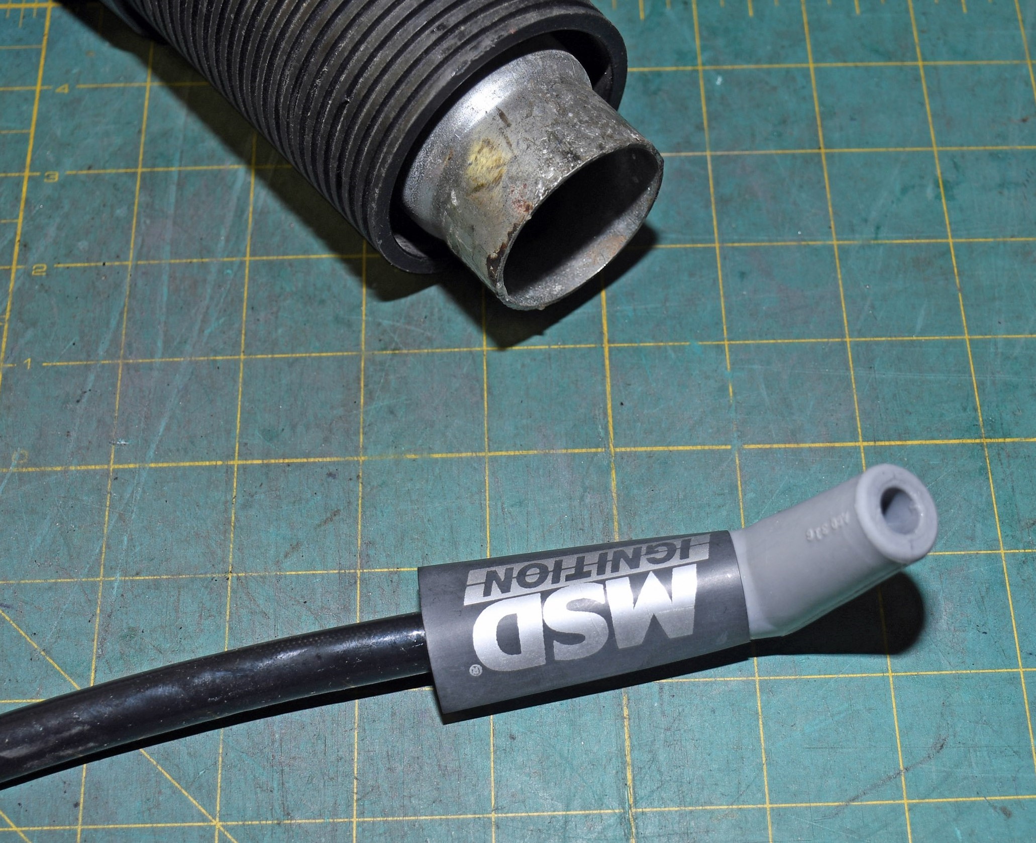When installing the distributor boots over the wires during assembly, you’ll have to pull the boot back quite a ways over the wire in order to cleanly install the terminal. (Image/Wayne Scraba)You can fight with this for a long time, but the easiest solution is to use a little bit of dielectric grease in the boot. It goes a long way toward distributor boot installation. (Image/Wayne Scraba)