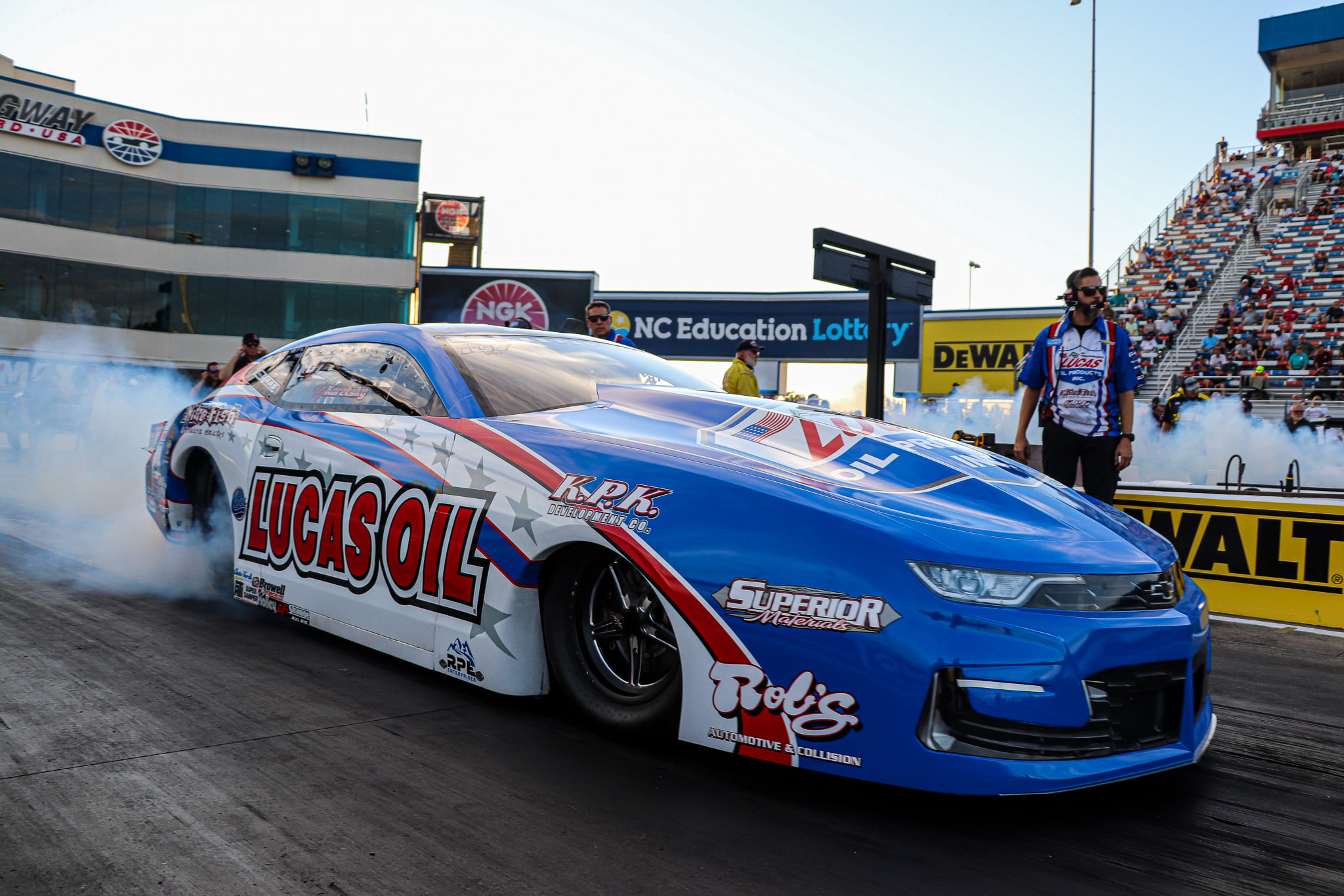 It was an all-KB Racing final in Pro Stock as Kyle Koretsky squared up against veteran racer and teammate Greg Anderson. Anderson is one win away from breaking the tie with Warren Johnson, making him the winningest Pro Stock NHRA driver of all time. But he’ll have to wait for the next race, as Kyle Koretsky notched the first Pro Stock victory of his career with a razor-thin victory: 6.629-seconds at 207.27 mph, compared to Anderson’s 6.639/208.20.