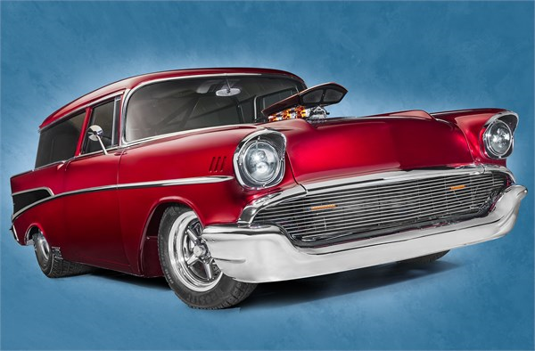 The car also features shaved door handles, a fiberglass hood, belly pans, a custom flush third brake light, and one-piece side glass. With all the extra trim and styling accents, Gene’s 210 is mistaken for a Nomad all the time.