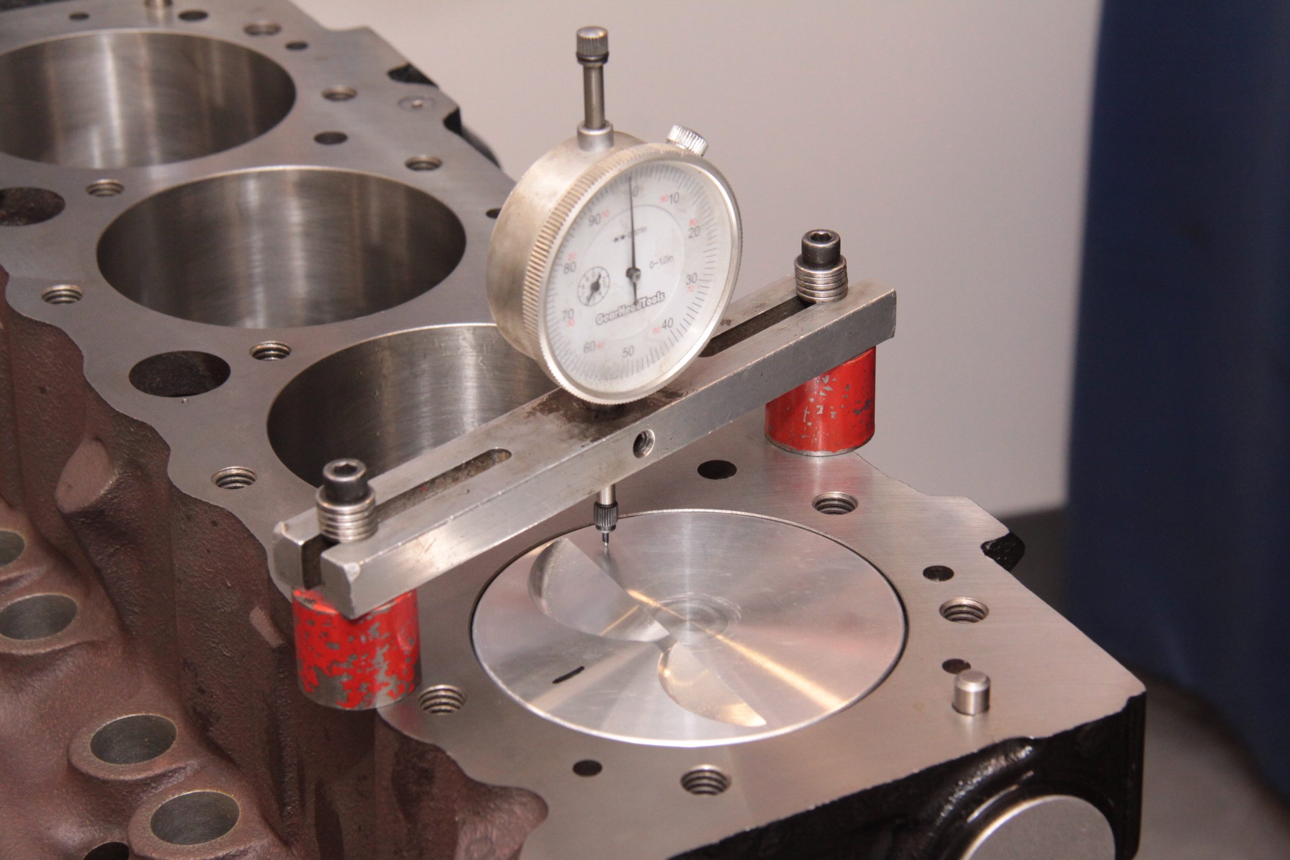 True TDC is checked prior to dialing in the cam. Jeff also checks deck height on all eight cylinders. (Image/Jim Smart)