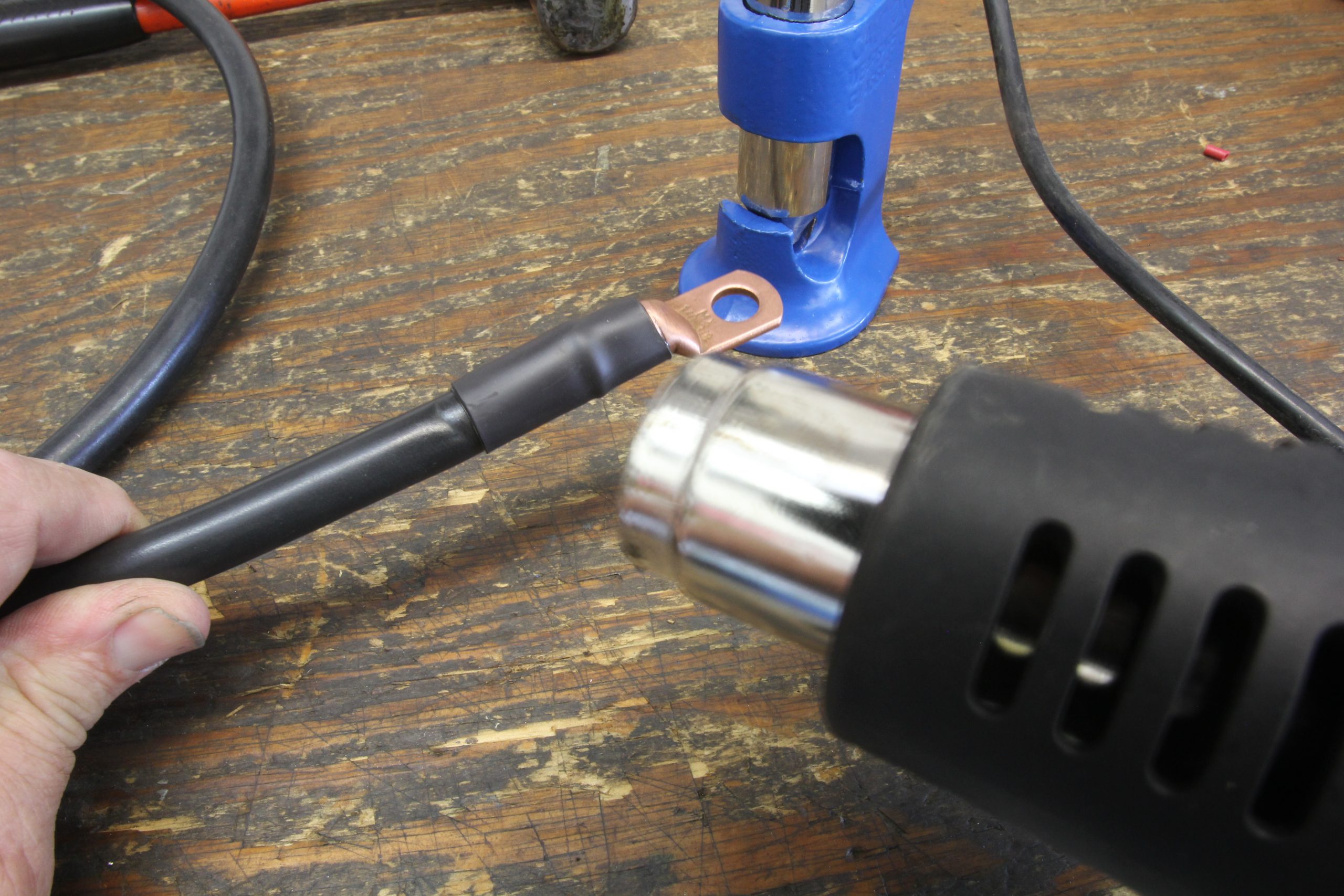 After a couple of hard blows, inspect the crimp and then slip the shrink tubing over the crimp and heat it in place. The instructions claim this tool can also be used to crimp wire down to 16 gauge but after experimenting we prefer hand-held crimping pliers for smaller gauge wire.