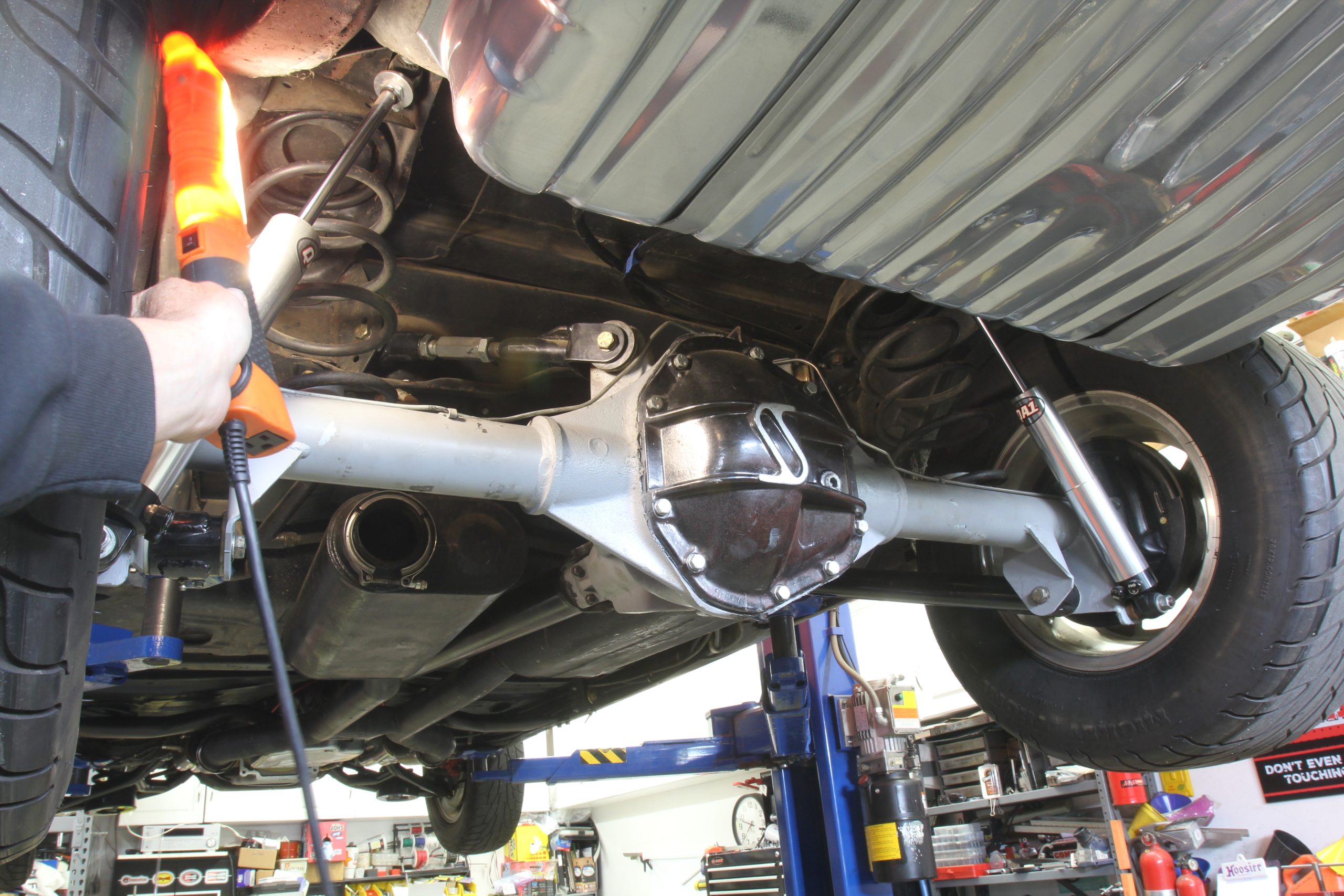 For Combination B of our test, we added a 4,000 rpm stall speed converter and also tubbed the Chevelle to allow installing a set of 31 inch tall Mickey Thompson slicks that are 12.5 inches wide. It’s clear this engine will require a tire this size or larger to generate the traction we’ll need to lay down all this power. We also added a 4.10:1 rear gear to compensate for the effective reduction in gear ratio with the taller tire.