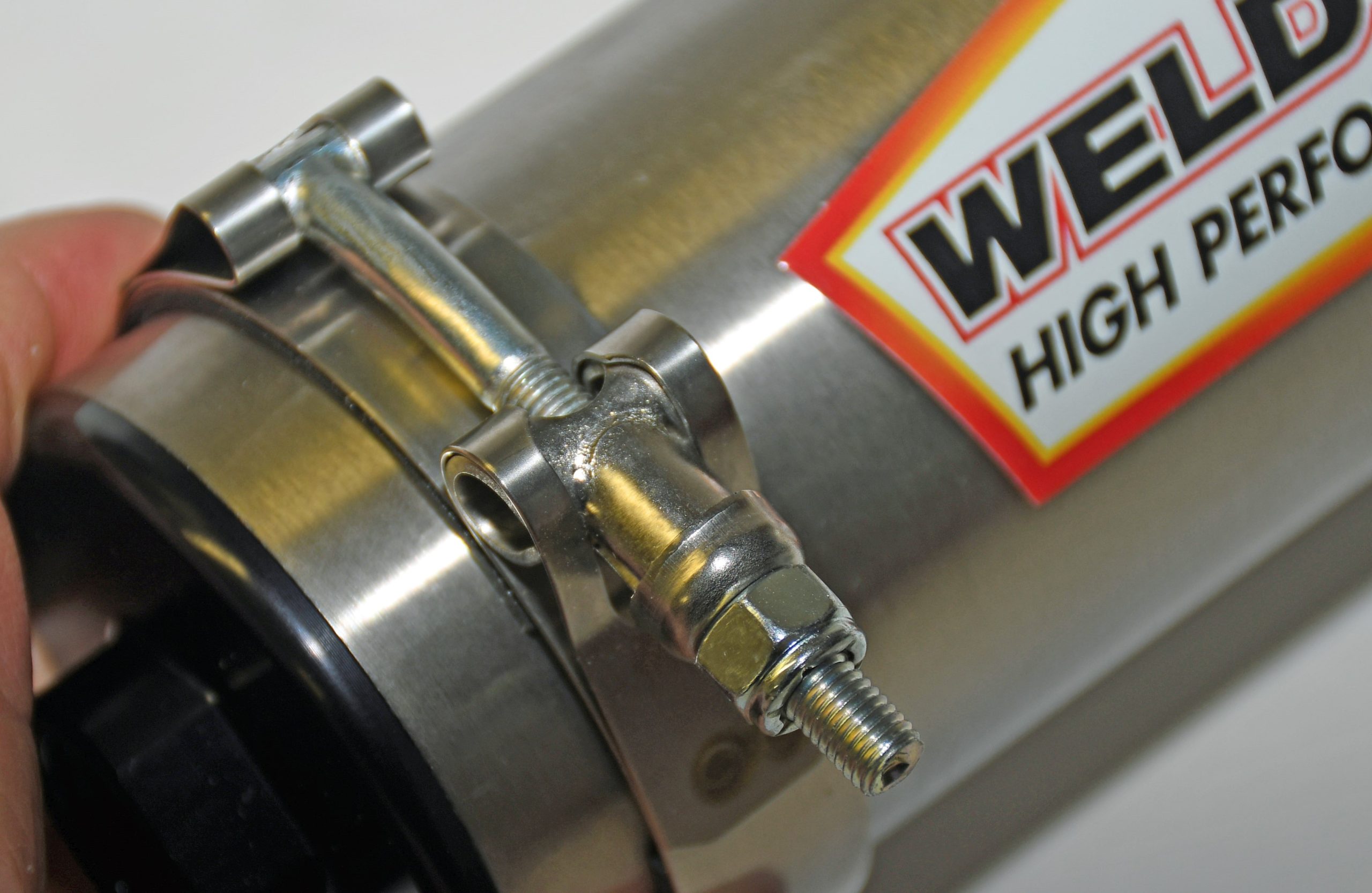 Down the road, we’ll show you how we prepared a stock tank to work in conjunction with a high flow electric (or mechanical) fuel pump. The short version is, we cut a new tank apart, installed a Holley Hydramat inside the tank and plumbed it with a -10 AN outlet, a -8 AN return line and a -8 AN vent—which happens to coincide with Weldon’s recommendations.