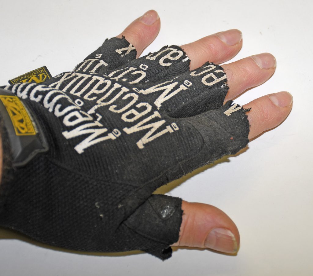 I thought about it and at first I said ”…Nah.” I mentioned this to an old pal who also happened to work at a local auto parts biz. He was in a similar boat but stated he tried gloves and he just couldn’t get used to them. I pondered it a bit and then I decided to try them for myself. So I bought a pair of Mechanix Wear gloves.
