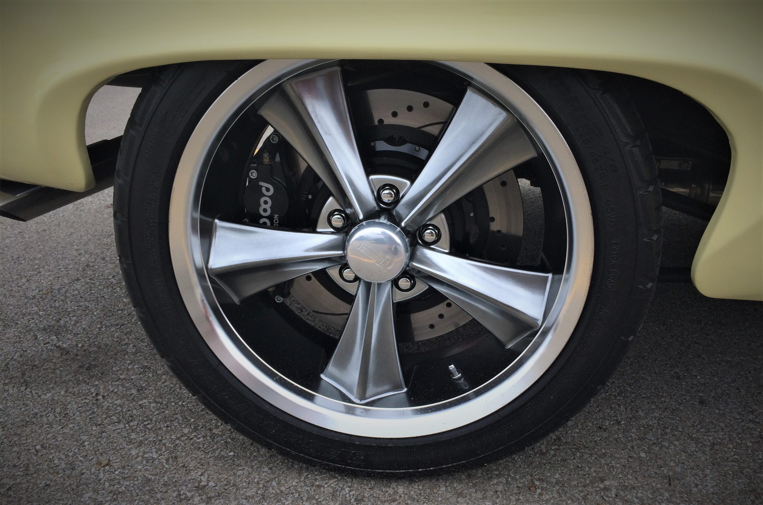 The Hemi J rides on Rocket Racing Wheels wrapped in BF Goodrich Tires, and notice the Wilwood calipers peeking through the spokes too. (Image/OnAllCylinders)