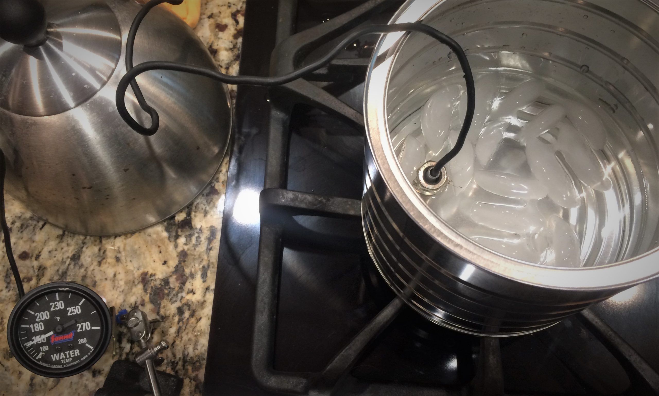 After the water hit the boiling point, we dropped in some ice to monitor the needle’s travel on the way back down—just to test for any binding in the gauge movement. (Image/OnAllCylinders)