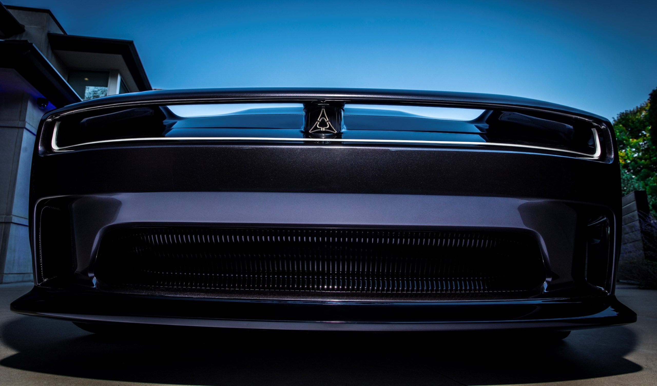 It’s a two-door coupe with plenty of nods to Dodge Chargers of yesteryear, right down to the old-school Fratzog emblem tucked into its squared-off grille. But look closely and you’ll notice that it isn’t really a grille at all, rather a front spoiler/wing/splitter combo that channels air over the hood, something Dodge is calling the “R-Wing.”