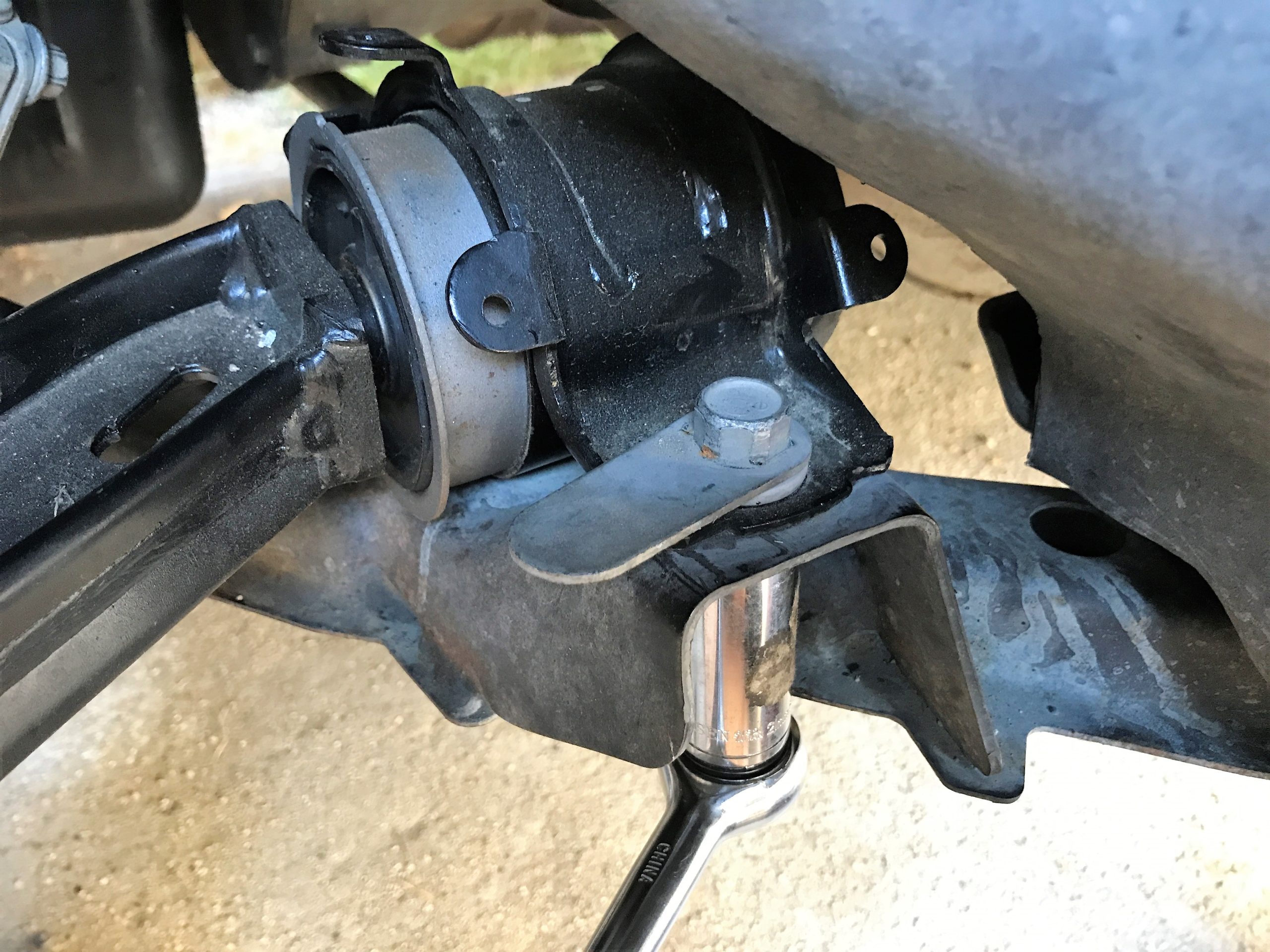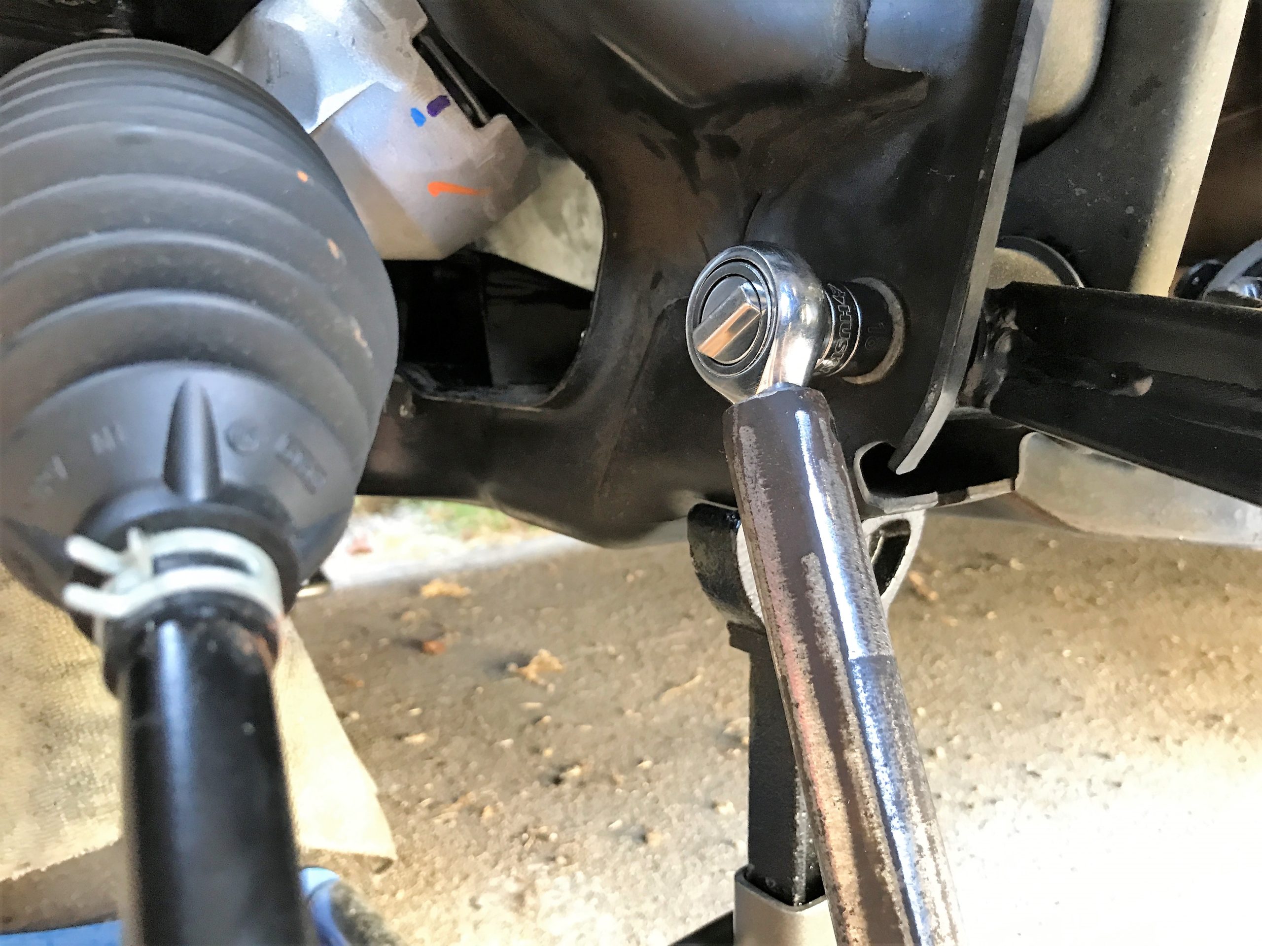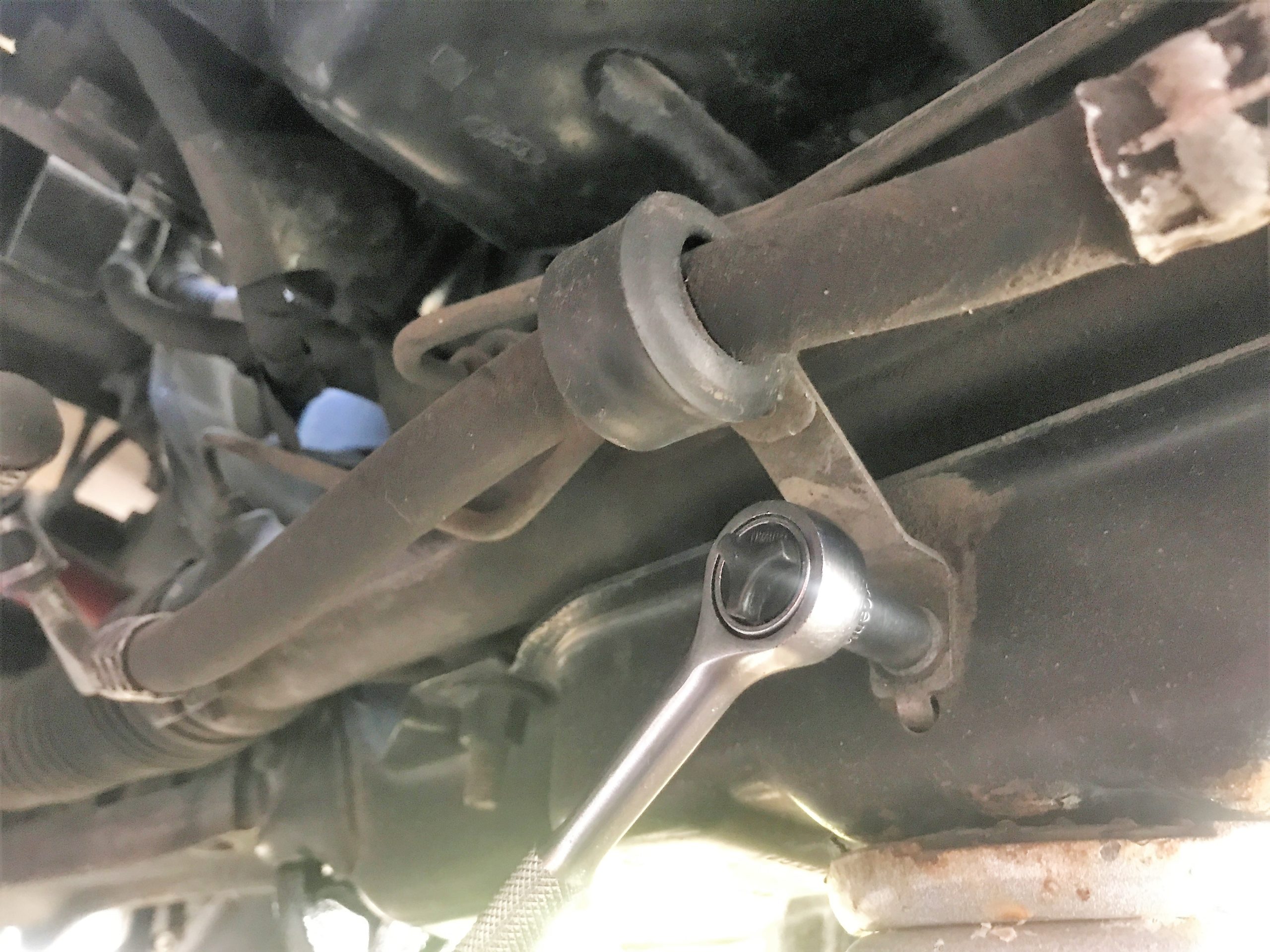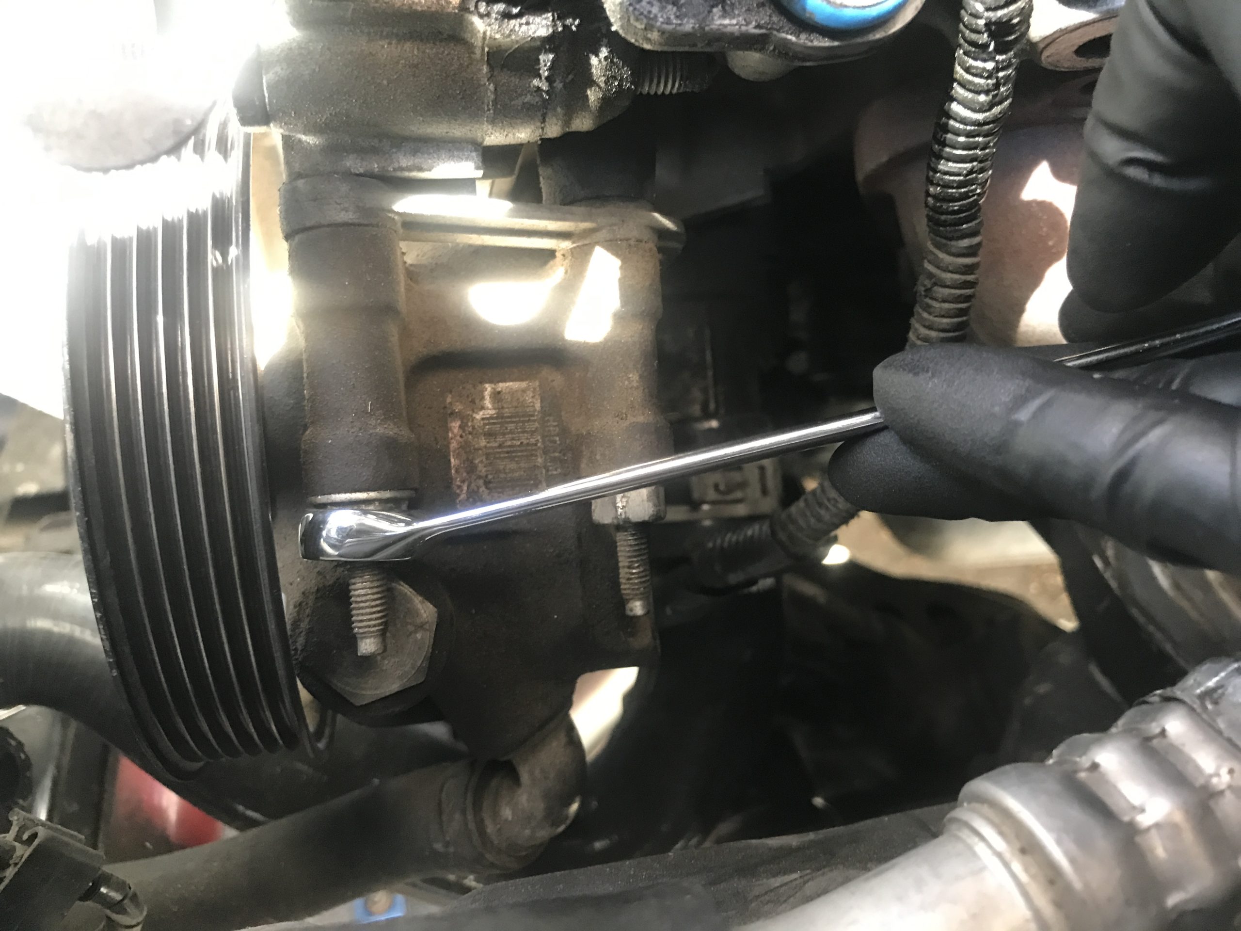 The M-3200-EPAS Ford Performance Parts Boss 302R electric steering rack is a service replacement for 2012-14 Mustang Boss 302R race cars and features a unique performance calibration designed specifically for road racing with racing tires. We would not recommend this rack for a street car that is never driven on track, but it is a streetable part. (Image/CaliPhotography)Before we can install the EPAS, we must remove all of the hydraulic power steering system. To keep it as clean as possible, remove the reservoir from the fan shroud and drain as much fluid out as possible. When this is empty, remove the hose from the bottom and flip it downward to drain it as well. (Image/Christopher Campbell)Before removing the rack from the box, we took a quick measurement side-to-side to make sure the rack was centered. (Image/Christopher Campbell)Here’s a look at the factory pulley and belt routing. Because the two idlers maintain pulley wrap on the alternator and power steering pump, the arrangement is actually going to work really for this swap. We’ll show you how. For now, remove the belt; you won’t be using it again. (Image/Christopher Campbell)Removing the power steering pump from the block is straightforward, but a little annoying if you don’t have a good ratcheting wrench (we highly recommend one). Remove these two bolts on the top, and one on the bottom side, and the pump is off. (Image/Christopher Campbell)We never realized how long the power steering pressure hose is on these cars. There’s a lot of fluid in there, so we took the hose loose to drain more fluid. (Image/Christopher Campbell)Running in front of the radiator and condenser is the tubular power steering cooler. It’s fine for street cars, but definitely not adequate for track cars. To remove it, unbolt the lower mounts for the condenser and slide the cooler mounting tabs out. This is the view from the driver’s side. (Image/Christopher Campbell)The passenger side has this V-shaped bracket that is bolted to the lower condenser mount. It will come off with the cooler. (Image/Christopher Campbell)You’ll need to remove the plastic air deflector from below the radiator to gain enough space to remove the cooler. With it out of the way, the cooler will drop right out. (Image/Christopher Campbell)Back to the K-member, this single bolt and a clip on the passenger side is all that is holding the power steering hose pressure hose. With this removed, we’ll have a lot more slack to remove it from the pump. (Image/Christopher Campbell)With the pressure hose loose, we can pull the pump upward to gain room to remove the hose. Note, we did remove our cold air intake to get a little more room up top. (Image/Christopher Campbell)An alignment will definitely be necessary to reset the toe after the swap, but we can get things very close by taking a measurement of the threads on the tie rod and matching it on the new rack. Our car is using a bumpsteer kit to compensate for the lowering, but the process for a stock tie rod end is the same. (Image/Christopher Campbell)After loosening the tie rod end nut and backing it off a little, hit the knuckle with a hammer sharply a few times to loosen the tie rod. Once you see it move downward, you should be able to lightly tap the nut to finish driving it out. (Image/Christopher Campbell)It would be convenient if these nuts that secure the rack weren’t welded to the K-member, but since they are, we have to remove the bolts from the top side. (Image/Christopher Campbell)Before we get to the rack mounting bolts, this is the ideal time to disconnect the steering column coupler. The bottom bolt is the one that locks the column to the rack via a groove in the rack’s input shaft. Before removing it, center the steering wheel. Once the coupler is disconnected, make sure the upper section does not rotate. (Image/Christopher Campbell)Just to the right of the steering coupler is the driver side mount for the steering rack. Believe it or not, this is the easy side for the bolt with a good amount of space to swing the ratchet. The 3V owners get off easy here; the Ford procedure for replacing the rack in a 2011-14 Mustang includes unbolting the motor mount bolts and raising the motor to reach the bolts. (Image/Christopher Campbell) The passenger side is a little tighter thanks to the starter, but the bolt is accessible from the front side of the rack. There are a lot of reports of problems removing these bolts, but we found them to be easy to handle with a 3/8″ drive ratchet. (Image/Christopher Campbell)With everything out, here’s a side-by-side comparison of the hydraulic system vs. the EPAS. Though we are simplifying the system, there’s no real weight to be saved here. The EPAS weighs about 34 lbs. and the factory system with fluid weighs roughly the same. (Image/Christopher Campbell)Before we can start bolting things back together, there is a slight modification to the K-member required. On the passenger side, the EPAS rack makes contact with the K-member right at the curve in the metal near the mounting bolt and will not allow the bolt to thread in. We hit it with an angle grinder to remove about 1/8″ of material from the curve to allow the rack to slide further back and the bolt to align. (Image/Christopher Campbell)Keep in mind that the steering coupler has to slide on at the same time when you’re sliding the rack into position. While the EPAS is not heavy, the weight is more forward biased than the hydraulic rack, so an extra set of hands, or a floor jack, is really helpful for wiggling it into place. The rack mounting bolts are torqued to 85 ft.-lbs., the steering coupler bolt should get a tiny touch of red threadlocker and torqued to 18 ft.-lbs. (Image/Christopher Campbell)In 2011-14 Mustangs, the EPAS rack receives CAN data from the powertrain control module (PCM) that tells the rack when to energize and provide power assist. Of course, our 3V S197 does not have this CAN data, so a simula