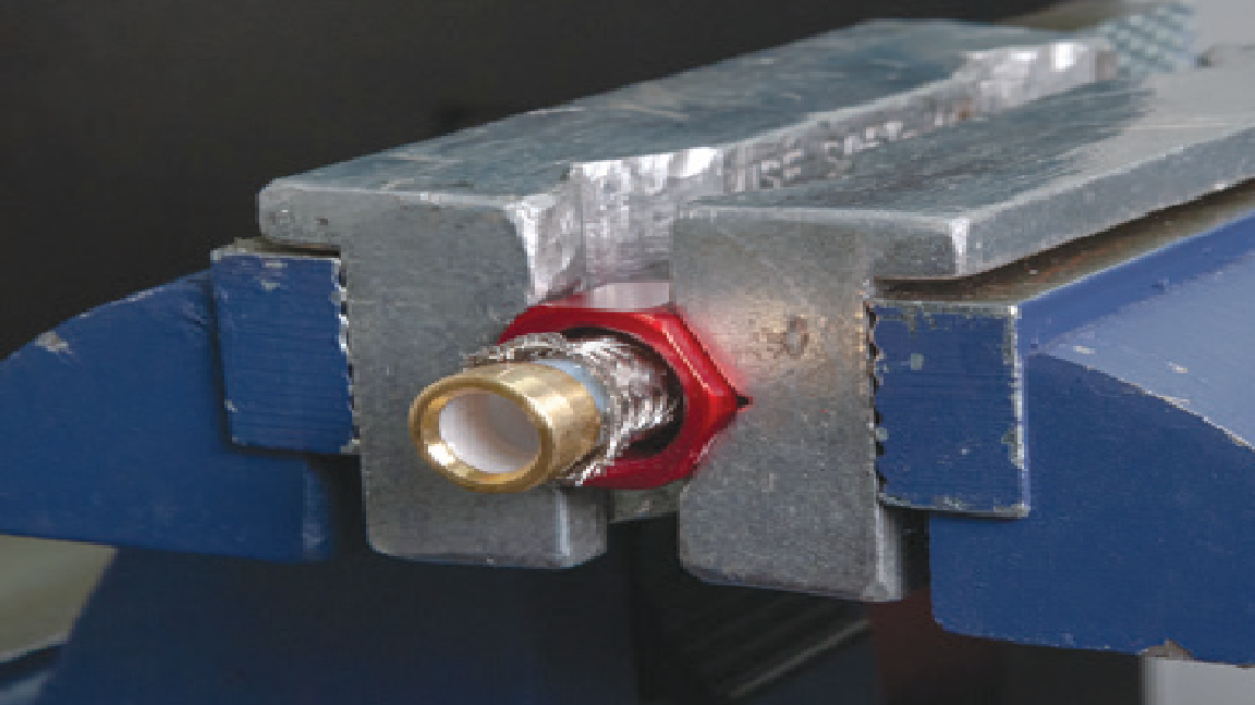 Polytetrafluoroethylene (PTFE) is the best material choice for overall fuel compatibility when using -AN style hose. This hose has a smooth extruded PTFE core with a braided nylon, polyester, Kevlar®, or stainless steel covering for added durability and abrasion resistance. PTFE hose can handle pressures up to 2,500 psi and temperatures to 500° F (depending on the brand and size). It will withstand E85, methanol, brake fluid, coolant, and many other fluids without permeation or breakdown. It does require a specific hose end that uses an olive (or ferrule) to compress around the hose core.