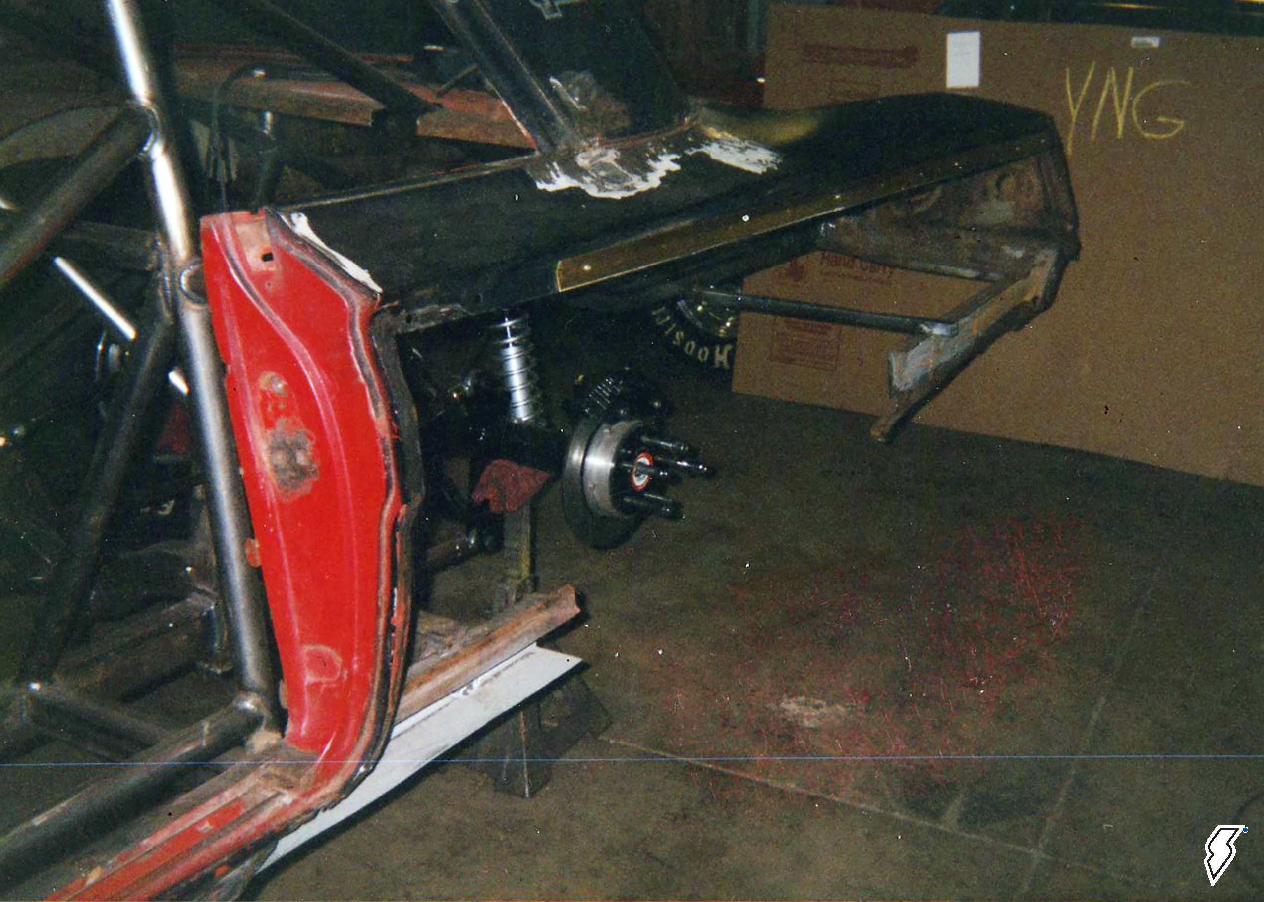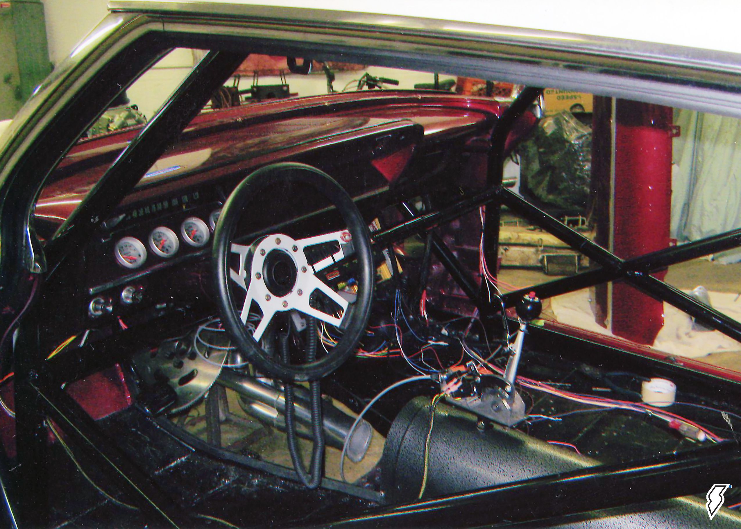 John also leveraged his expertise when it came to setting up the chassis. He modified the factory front frame rails and installed new 2″ x 3″ frame rails that run from the firewall all the way to the back of the car. This skeleton provides the foundation for Hypercoil springs over AFCO Big Gun shocks at all four corners. Tubular upper and lower control arms keep the Hoosiers in line up front and a 4-link pushes them into the Earth out back. A custom rack and pinion steering setup keeps the beast travelling in the intended direction.