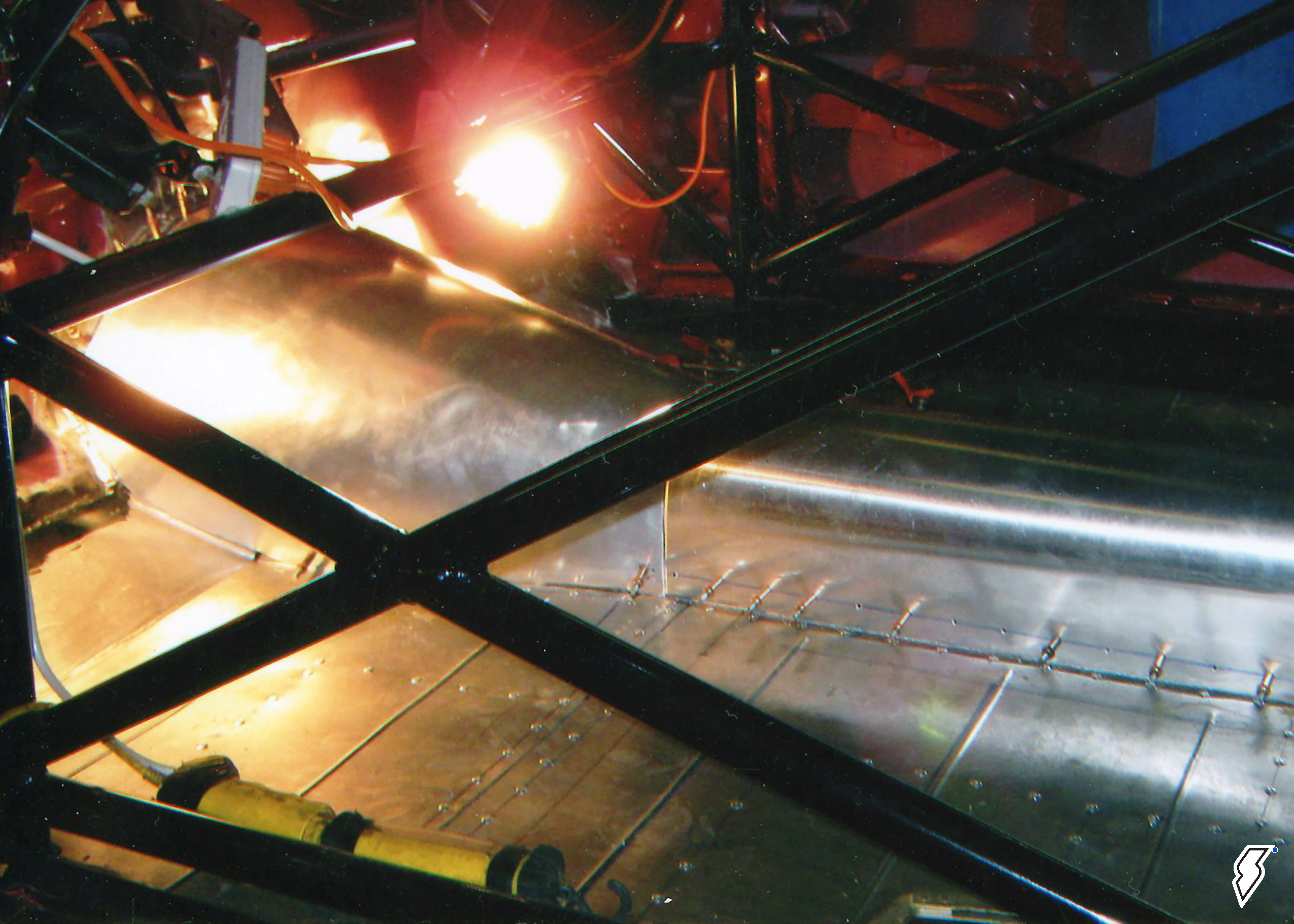 - Modified stock front frame rails with 2″ x 3″ tube rails from firewall