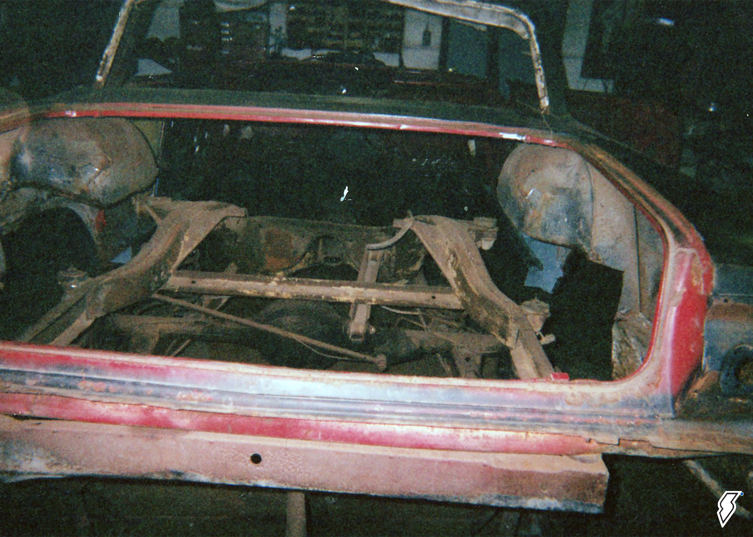 Not wanting to cut up his current ride, John began searching for a new vehicle to take down the quarter-mile. “I wasn’t really looking for another Impala, but it just so happened that my friends had one available,” says John. “It was pretty rough—just an ugly body with no floor pans, no inner rockers, and rusty quarter panels. But it was exactly what I wanted.” He bought the car and trailered it home from Pennsylvania on New Year’s Day, 2006. The car was cut up and disassembled by that evening.