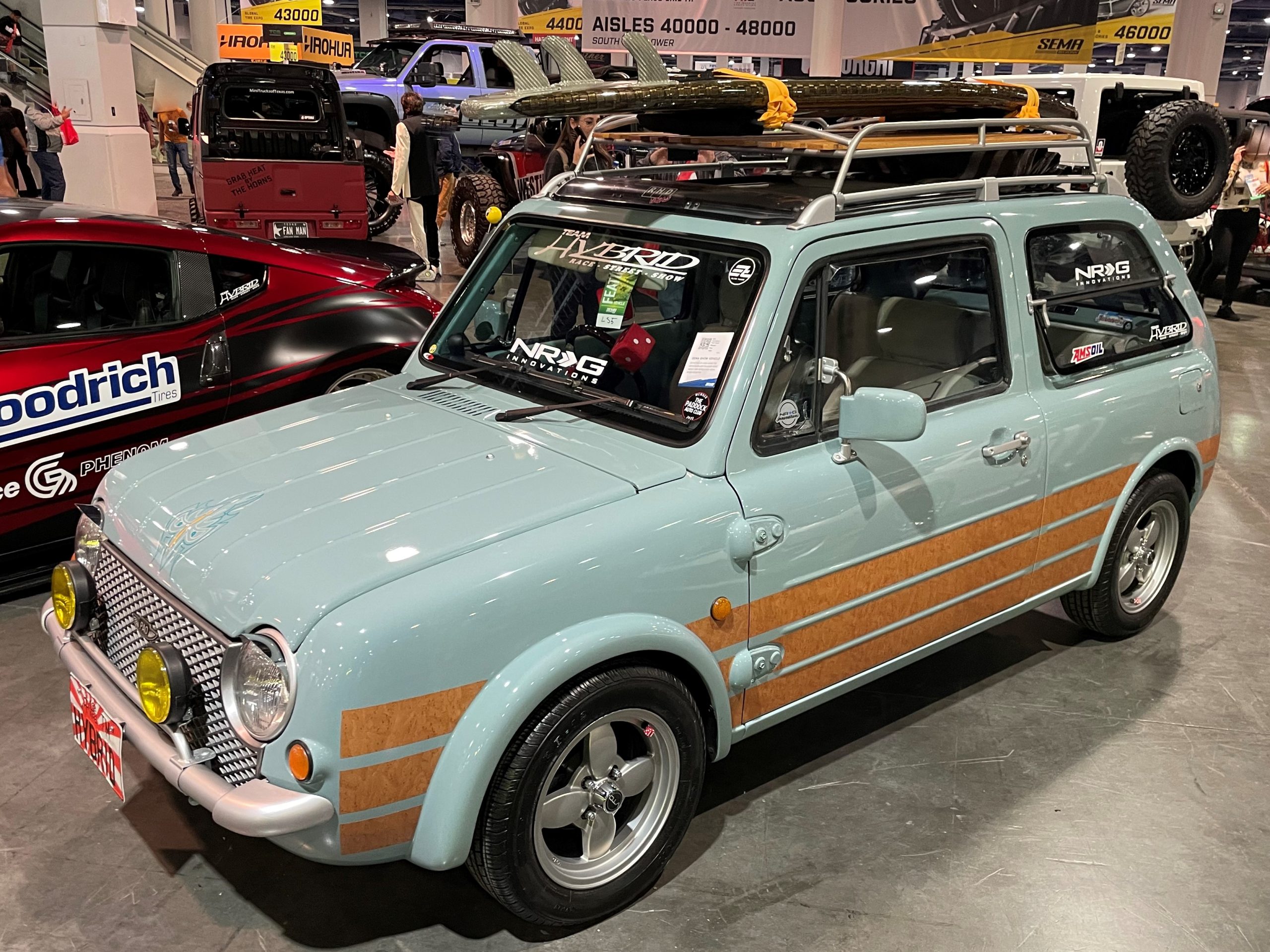 OK, we’re totally cheating here, as this was taken at the Cincinnati, Ohio airport that we departed from—but if Exhibit A or Exhibit B are any indication, we’re big fans of Crosley around here. (Image/OnAllCylinders)The wheel wizards at Rohana had perhaps the biggest fleet of show vehicles at the event, with a veritable parking lot of awesome rides shod in an array of amazing custom wheels. (Image/OnAllCylinders)Into Rivieras? You may enjoy this custom Rivi too. (Image/OnAllCylinders)Learn more about Dodge Power Wagon history here. (Image/OnAllCylinders)Our pals from Goodguys were at the show too and, of course, a super-clean Ford street rod was front-and-center in their booth. (Image/OnAllCylinders)Ooooooohhh. (Image/OnAllCylinders)We saw plenty of Rivians at the event as well, and many were outfitted with cargo racks and slick overlanding setups. (Image/OnAllCylinders)Speaking of electric vehicles, here’s a delightful Alpha Wolf. Powertrain aside, we love the regular cab, short box look. (Image/OnAllCylinders)Not only was the legendary Peter Brock in the Atech Motorsports booth, he brought along his personal Shelby Daytona coupe to display as well. (Image/OnAllCylinders)Excuse me mister, but I’m a mister too. (Image/OnAllCylinders)The reborn DeLorean Motor Company was there showcasing its iconic gull wing sports coupe. The want has never been stronger. (Image/OnAllCylinders)Though it is superb, this wasn’t our favorite wagon at SEMA 2023. (Image/OnAllCylinders)Like what you see? You may enjoy the throwback-inspired Summit Racing Baja Bronco Series too. (Image/OnAllCylinders)This charming retro-styled Nissan Pao surf wagon was part of the SEMA Battle of the Builders competition. (Image/OnAllCylinders)In addition to the German and Italian exotics, the U.K. was well represented too via a mix of Jaguars, Astons, and Land Rovers. (Image/OnAllCylinders)We love wheel diameters measured by yardsticks! (Image/OnAllCylinders)If 2023 SEMA show trends are any indication, the Pro Touring look is evolving, incorporating some land-speed racing elements and a sleeker, more refined style. (Image/OnAllCylinders)In addition to its all-day-long burnout sessions, the Hoonigan booth was packed with jaw-dropping rides. (Image/OnAllCylinders)Across from that Acura sat this race-spec Ferrari. (Image/OnAllCylinders)