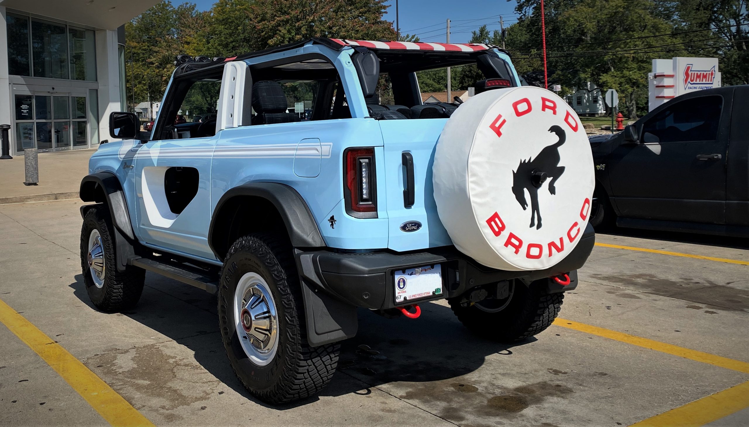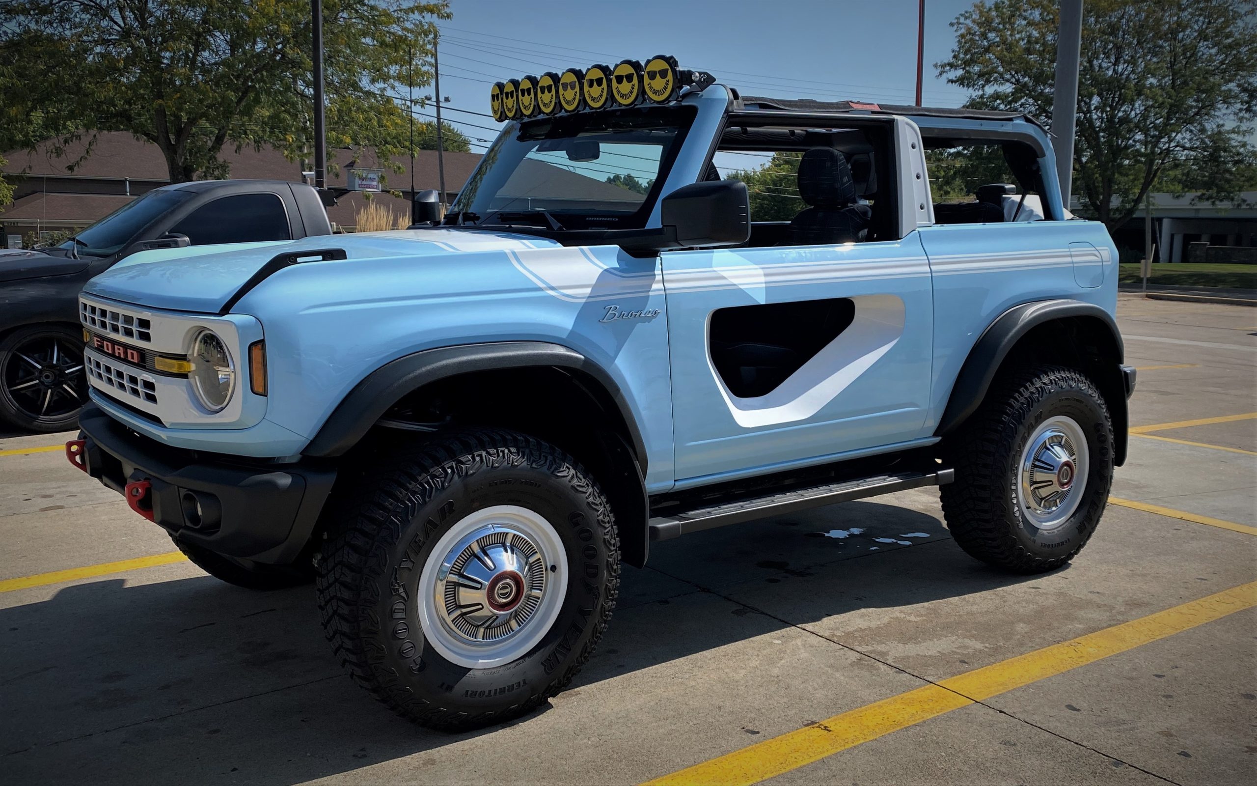 And while the Heritage Editions came from the factory with some throwback trim, it appears that there might be some additional retro-style Ford Performance Bronco script emblems swapped on here as well.