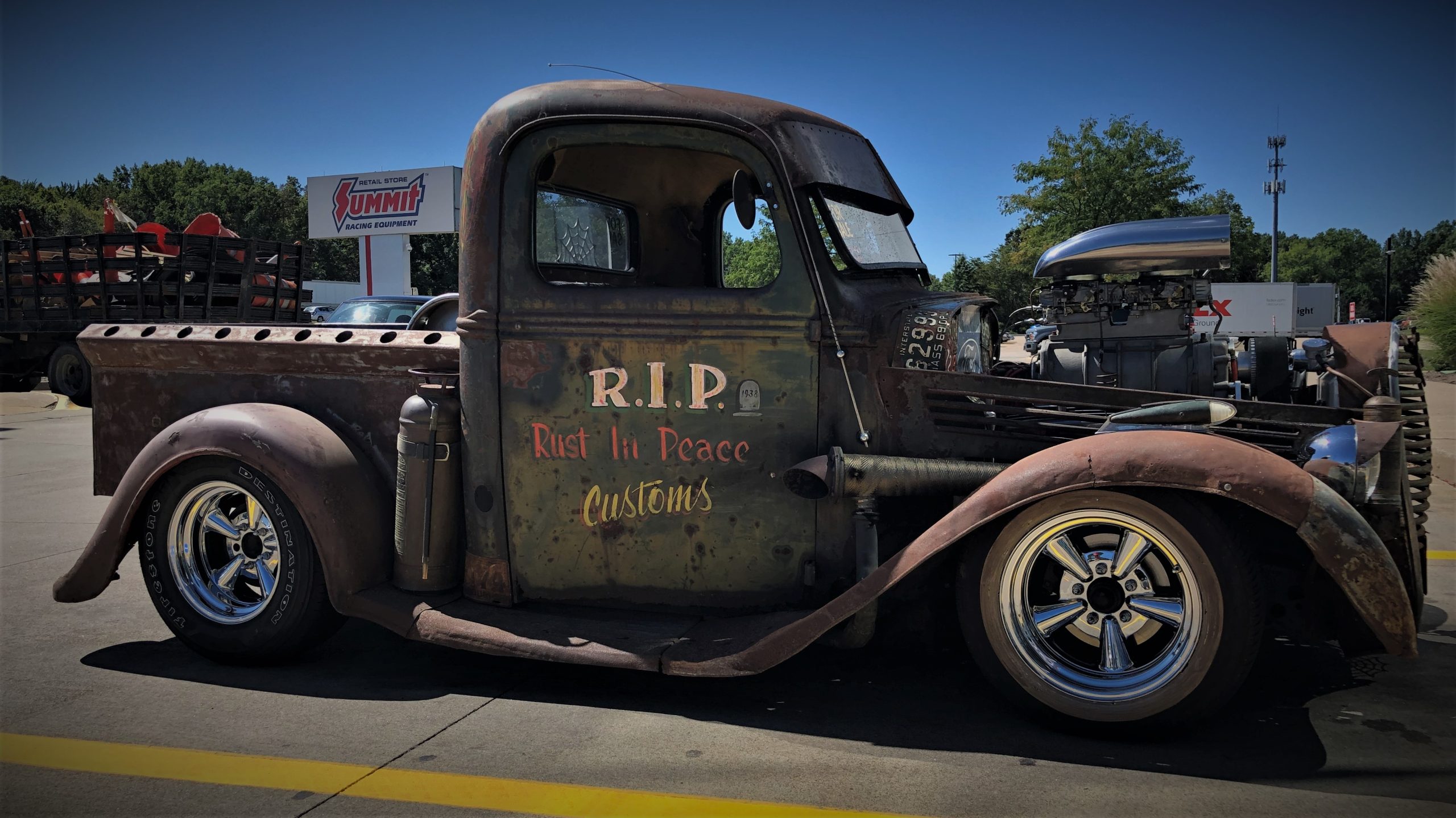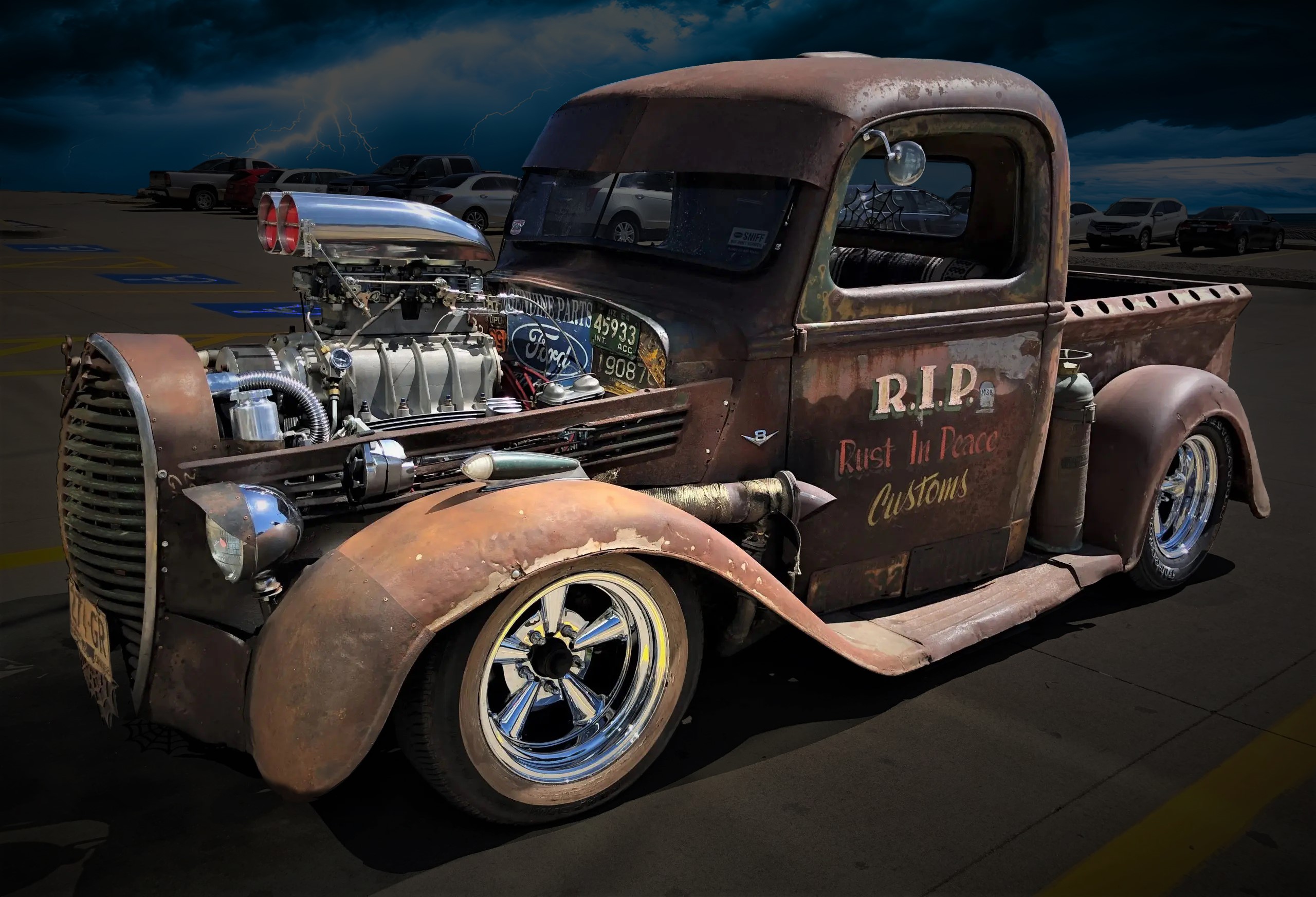 With “Rust in Peace Customs” scripted on the doors, this 1938 Ford is the perfect execution of a Rat Rod—rusty but clean, methodically “cobbled” together with a thoughtful mix of weathered patina and well-engineered running gear.