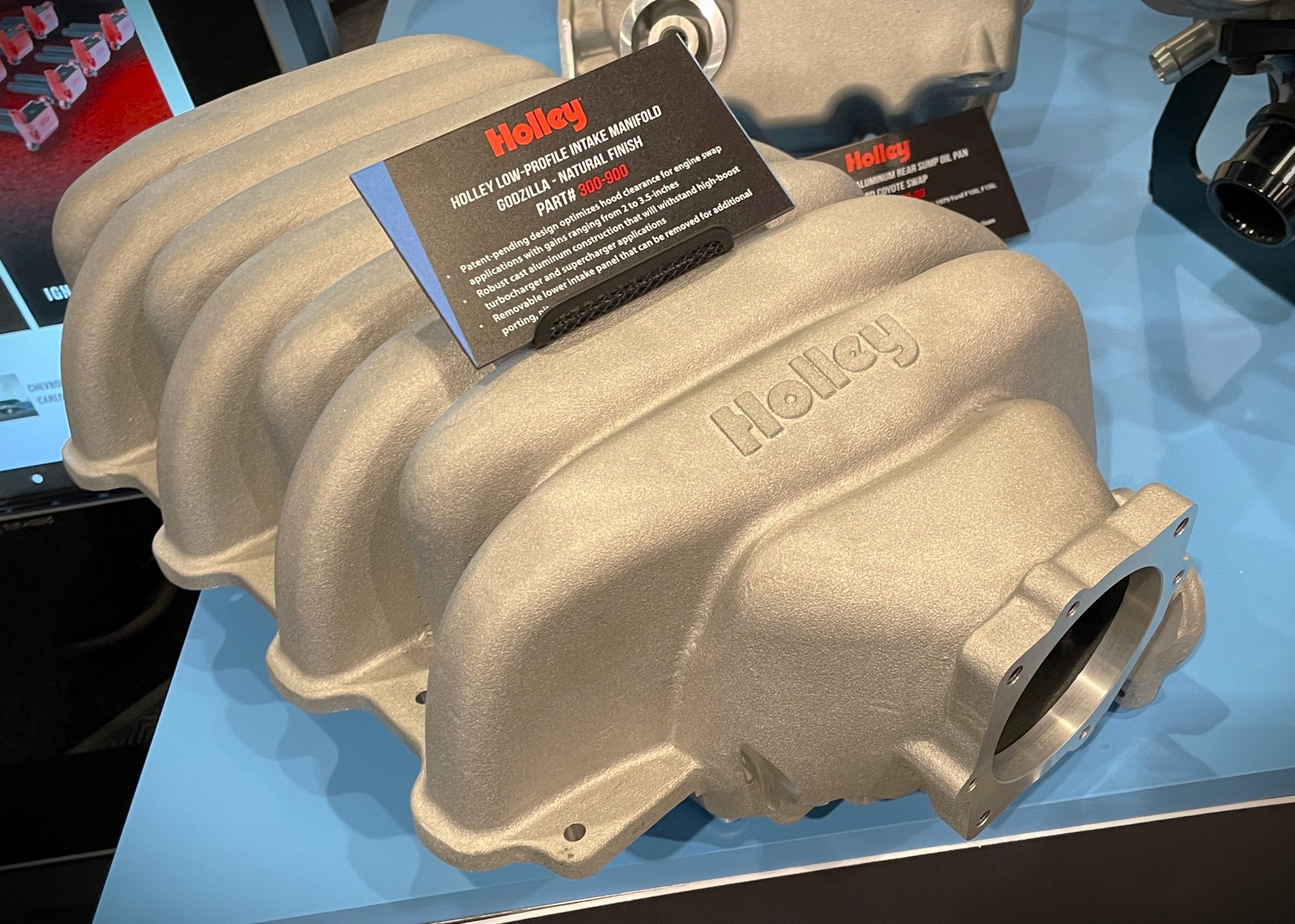 Since the Godzilla engine itself was born as a truck engine, many swappers are running into hood clearance issues when stuffing the V8 in a place it wasn’t intended. Holley’s low profile intake manifolds solve that problem.