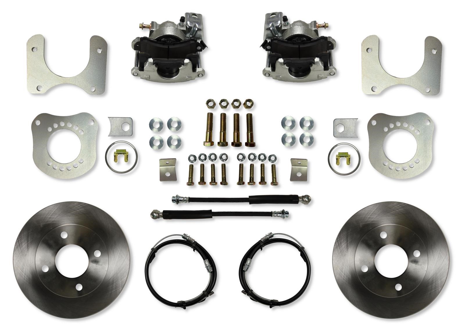 And you get pretty much everything you need in the kit to finish the swap, including key components like the calipers, pads, rotors, mounting brackets, hoses, steel parking brake cables, and hardware. (The caliper also has the parking brake built right in too.)