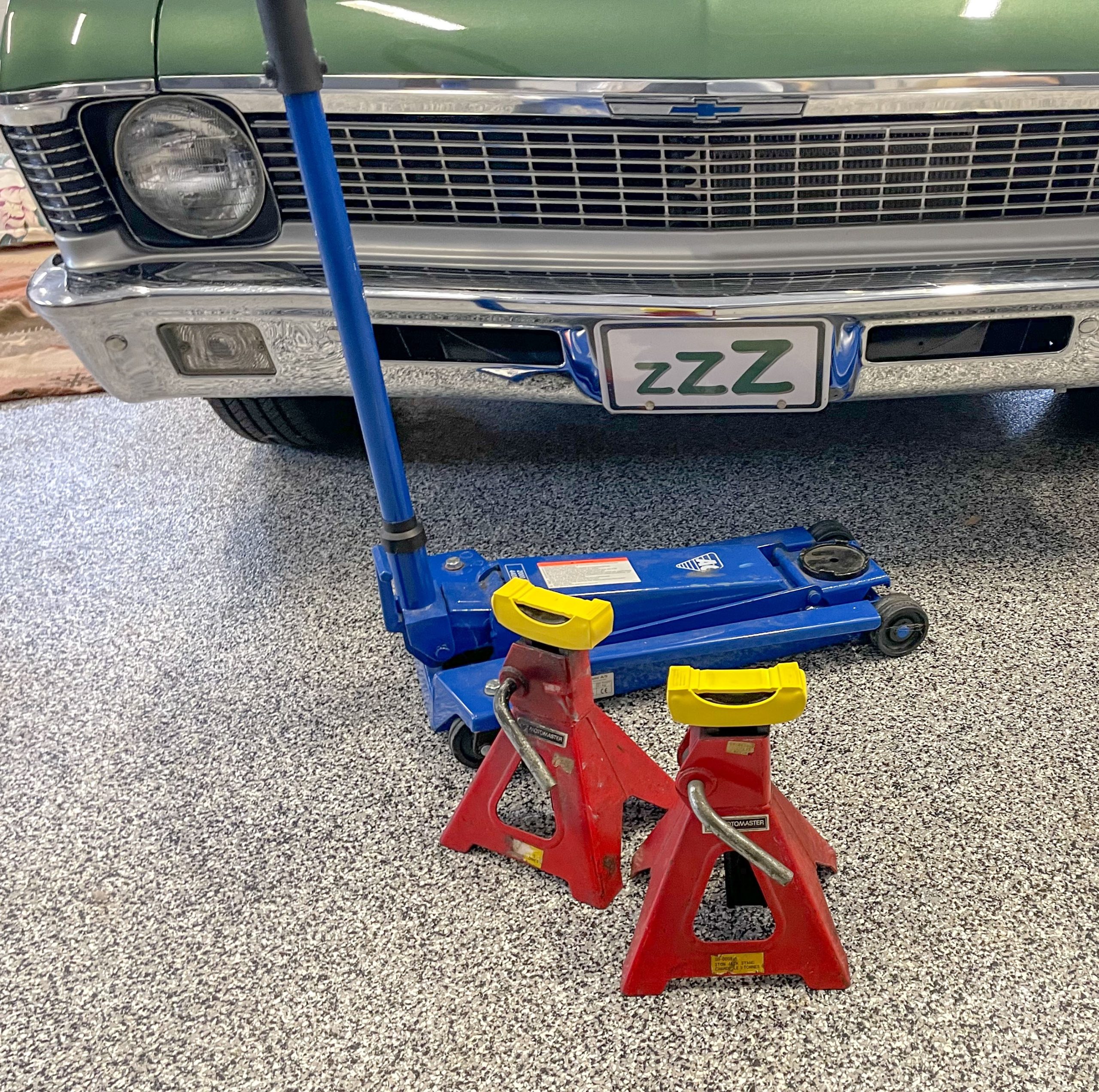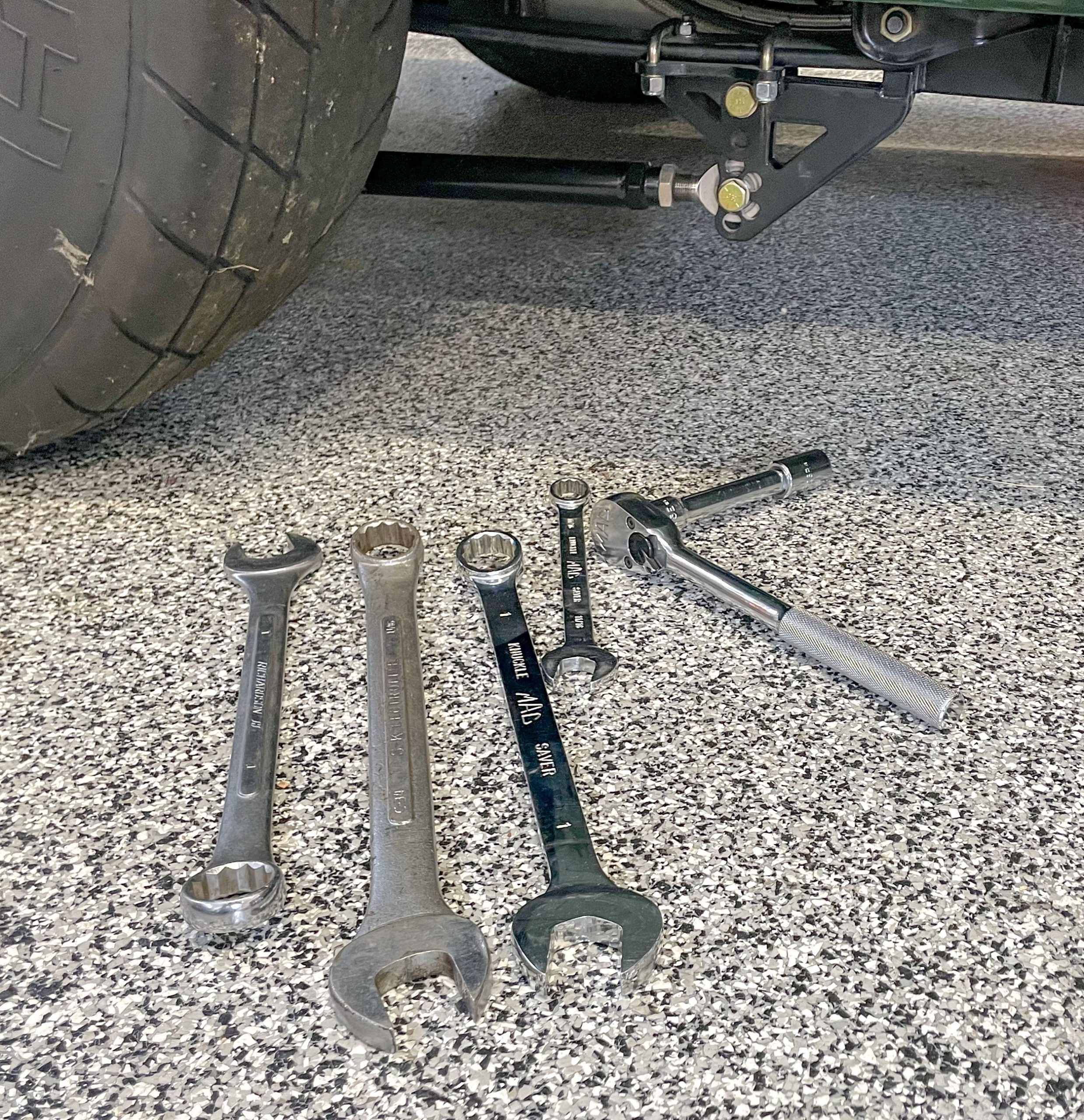 If you have space, a compact floor jack and jack stands are good things to have at the rack. Some plywood sheets cut to fit under the jack stands will keep them from sinking in soft pit spaces.