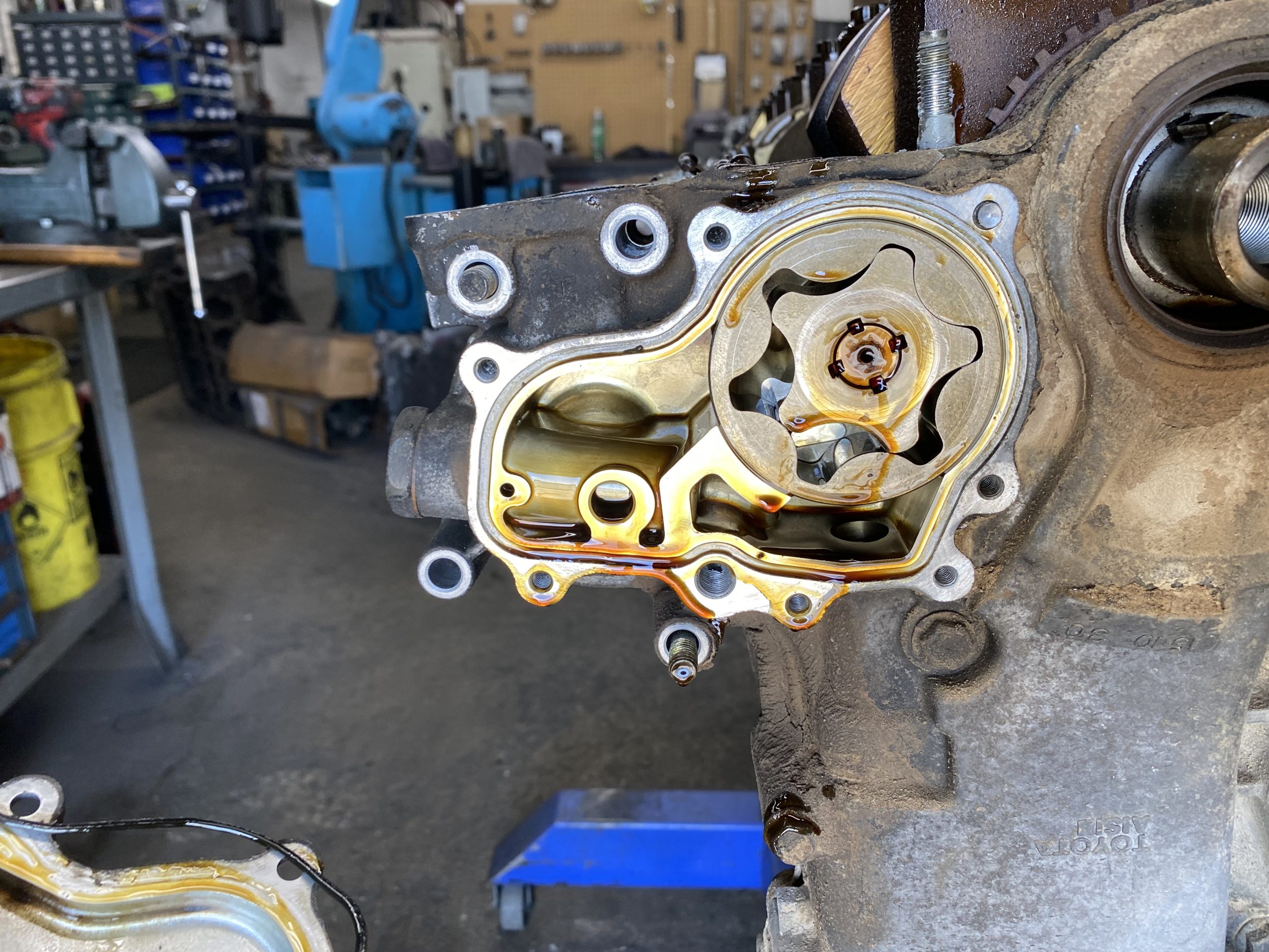 Once that’s done, we take a look at the oil pump, which is a dead-simple design and likely good for another 250k miles (or more).