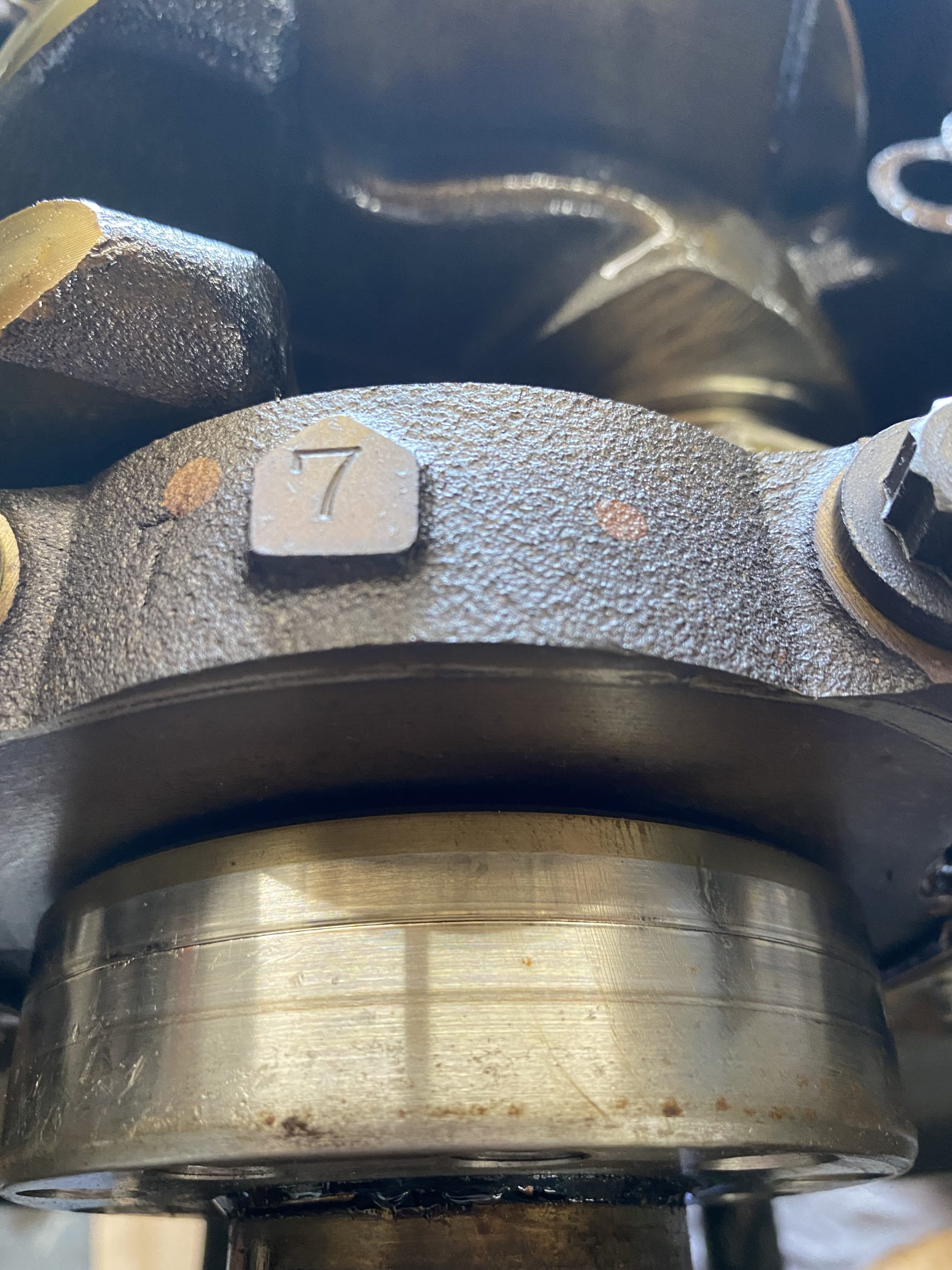 Kyle numbers the rods and caps before disassembly. The fact that no one else did this is a pretty sure sign the engine’s never been apart before. Again, things look darn clean, which indicates our donor motor was well looked-after.