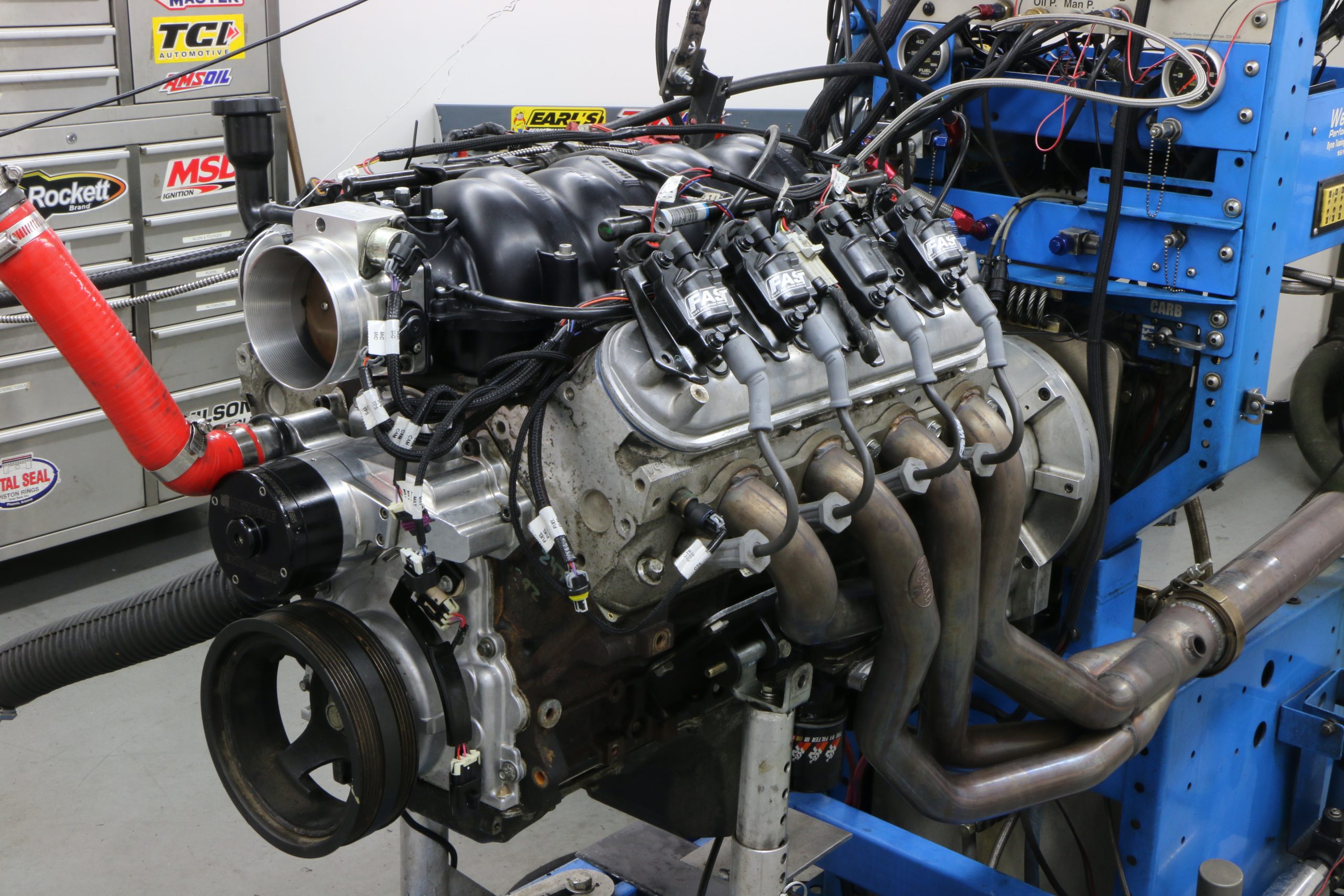 The air/fuel and timing were controlled by a Holley HP management system (controlling 80 pound injectors), while exhaust chores were handled by a set of Hooker 1-7/8 inch (long-tube) headers.
