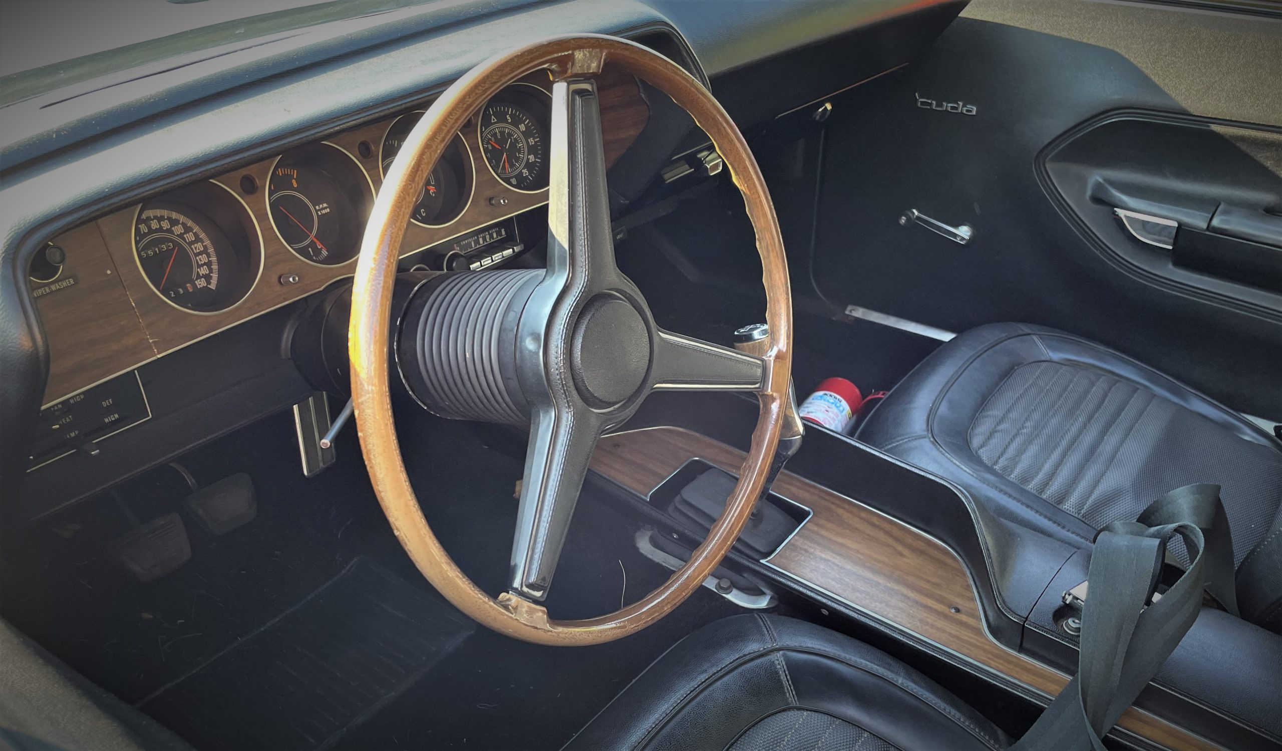 While the 3rd-gen. Barracuda already has plenty of things going for it, we’re particularly fond of the wood dash appliques that could be optioned from the factory. Depending on the year, the woodgrain was either straight cut or burled, and it was available up until the Barracuda’s demise in 1974.