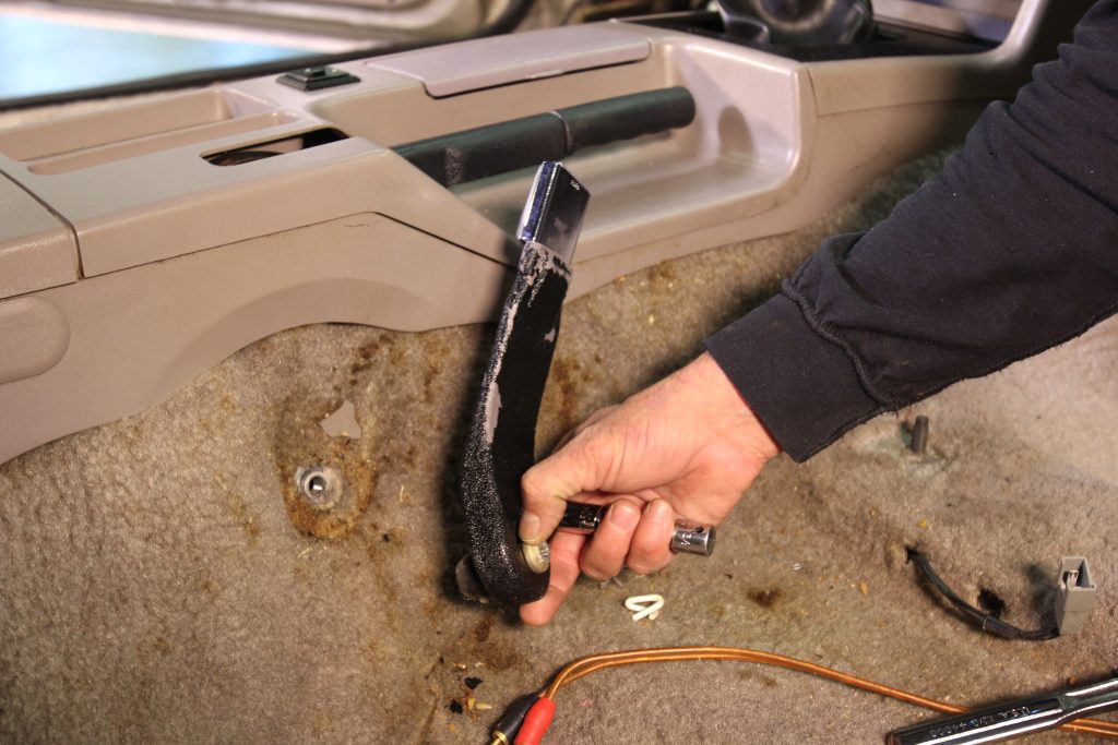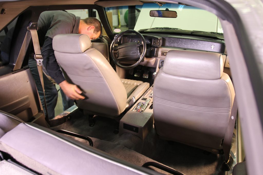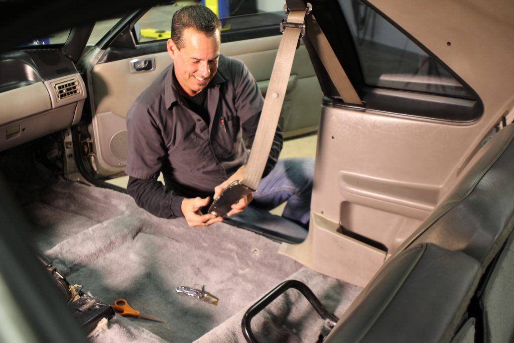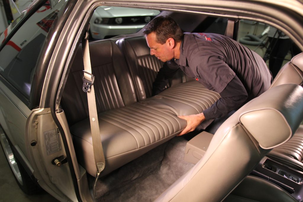 Installation of a new carpet is easier than you think. For not a whole lot of money, you can restore the appearance of your Ford Mustang’s interior in just a few hours. (Image/Evan Smith)This 5.0 LX suffered from a tear in the front and stains in the back. (Image/Evan Smith)(Image/Evan Smith)We disconnected the negative cable (so the dome light wouldn’t drain the battery), and we removed the new carpet from the packaging. (Image/Evan Smith)We then removed the rocker sill plates. (Image/Evan Smith)Followed by the kick panels. (Image/Evan Smith)Next, we removed the front seats. Note: If your car is equipped with power lumbar, undo the connector (located under the driver’s seat) and carefully remove the seats. (Image/Evan Smith)With the seats out of the way, we unbolted the seat belts where they attach to the floor. (Image/Evan Smith)Next, we unscrewed the shifter knob and popped off the shifter boot bezel and the boot itself. (Image/Evan Smith)With the top of the console free, we disconnected the electrical supply to the 12-volt power source, and to the power window switch. (Image/Evan Smith)Then we removed the heater control bezel, the radio, and the remaining screws that retain the console. (Image/Evan Smith)This allowed us to remove the console and mounting bracket. (Image/Evan Smith)We then pulled out the rear seat cushion, which pops out of the mounting clips. (Image/Evan Smith)Following this we removed the old, nasty rug. If you’re doing this at home, don’t chuck the rug in the garbage just yet—you’ll need to use it as a template for marking holes that you’ll cut in your new carpet. (Image/Evan Smith)Here’s the old factory rug with the new ACC carpet. (Image/Evan Smith)We recommend using a heat gun to help mold the carpet into shape. Remember, it was rolled up in a box, so it needs to relax and take shape to make installation easier. Leaving it in the sun to warm up is another trick. (Image/Evan Smith)Next, lay your old carpet over the new one, then mark and cut the holes for the shifter and emergency brake handle. We recommend cutting small holes first and then trim the carpet to fit once it’s in the car. (Image/Evan Smith)Now you’ll be ready to install your new carpet. We slid the ACC carpet into our LX and fed the shifter handle and parking brake through the holes we previously made. We then formed the carpet to the shape of the floor. It was slightly wrinkled at first, but it smoothed out as it settled into place. (Image/Evan Smith)Next we trimmed the carpet to fit tightly around the shifter and the console mounting bracket. (Image/Evan Smith)Then we installed the outer seat belts to keep the carpet in place. (Image/Evan Smith)Working from the center of the carpet on out, we reinstalled the console base and mounting hardware, along with the lower portion of the instrument panel. (Image/Evan Smith)Then we slid the shifter boot over the handle, along with the shifter bezel and the shifter knob. (Image/Evan Smith)We then popped the heater control bezel into place. (Image/Evan Smith)Here, we installed the seatbelts. (Image/Evan Smith)With the carpet nice and tight, we screwed in the passenger rocker sill plate and installed the passenger seat. Following this, we reconnected the fuel pump relay and bracket. Then came the kick panels along with the driver’s side sill plate. (Image/Evan Smith)Followed by the driver’s seat. (Image/Evan Smith)Lastly, we put the rear seat in the Mustang. (Image/Evan Smith)We hit it with a vacuum and began enjoying the stunning good looks of our new ACC carpet. (Image/Evan Smith)The completed project brought the interior alive! (Image/Evan Smith)(Image/Evan Smith)