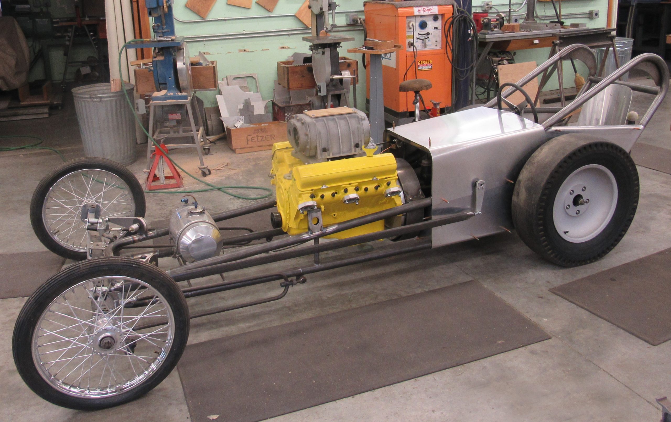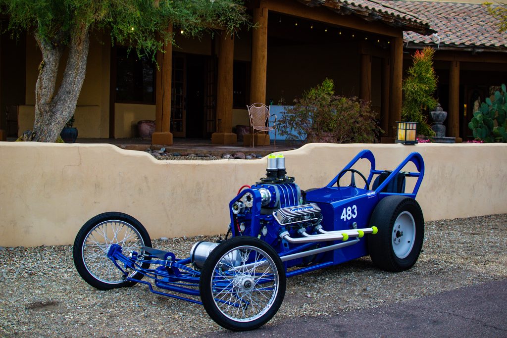 With the original dragster lost to the sands of time, Richard and Greg wanted to recreate it as accurately as possible—right down to the 4-71 GMC Blower on its 390 cubic inch Cadillac A/Fuel engine. Thankfully, they had pictures and some rough build specs to work with.
