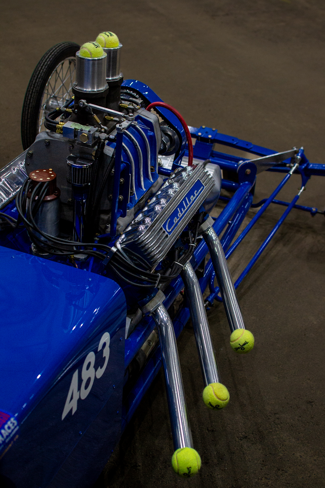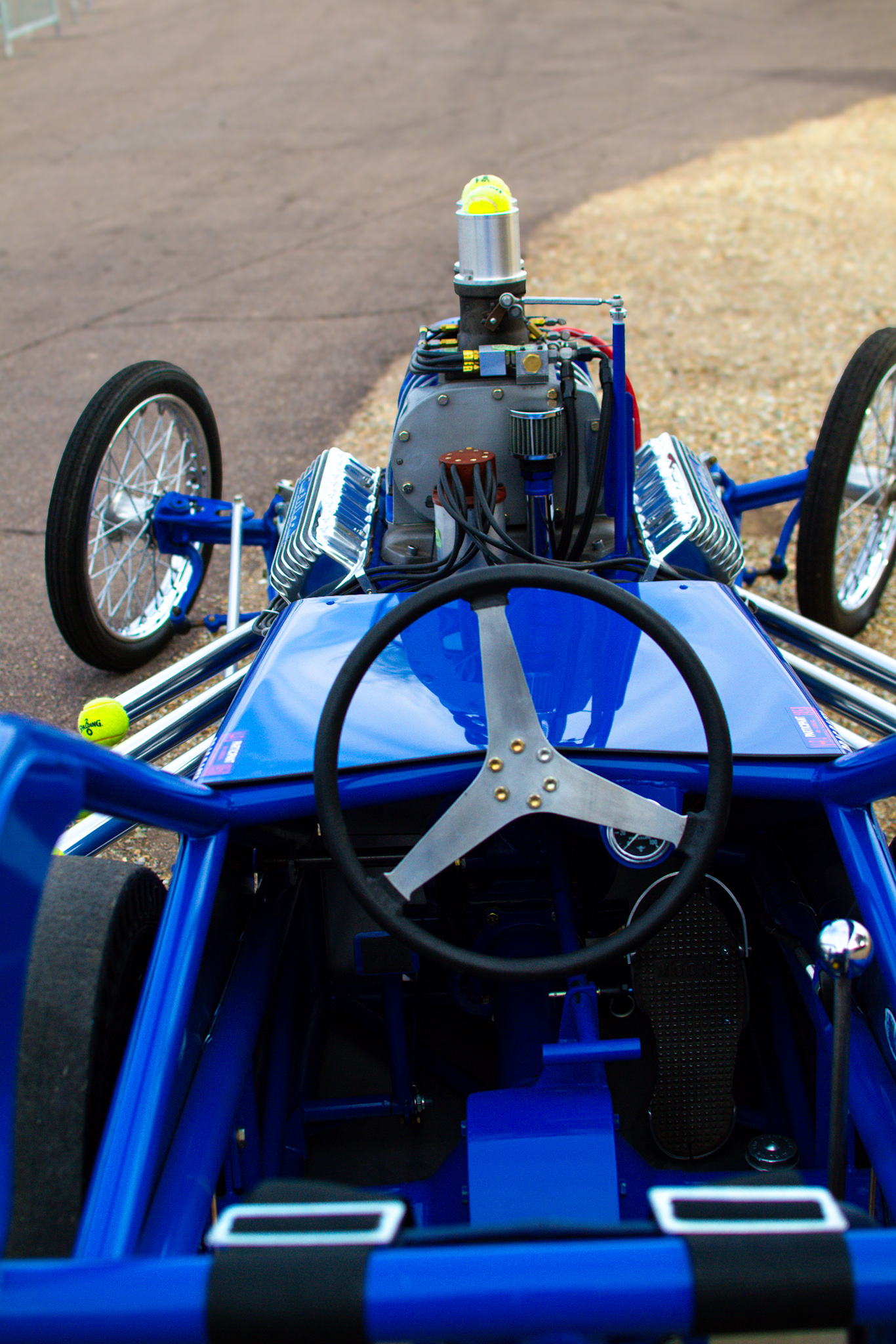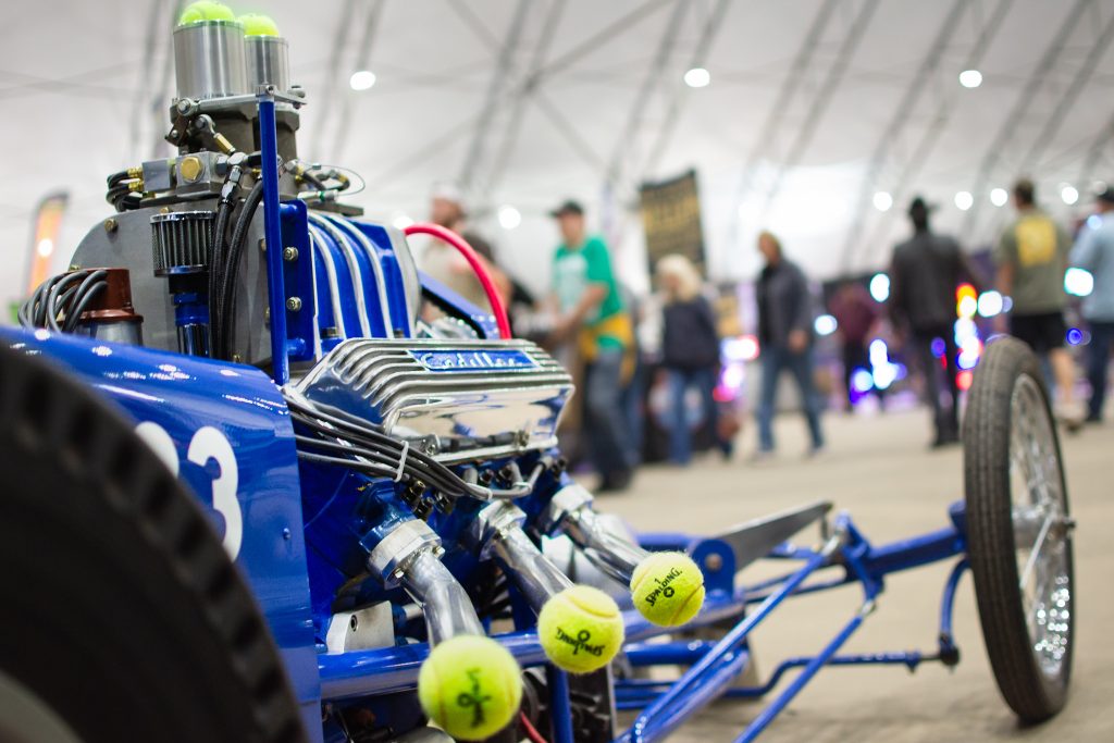 Greg tells us the dragster always draws a crowd of folks eager to learn about its history and get the story behind its famous owner, Pancho González—in fact, walk around the dragster and you’ll see his own signature Spalding tennis balls stuffed in the velocity stacks as a nod to its provenance.