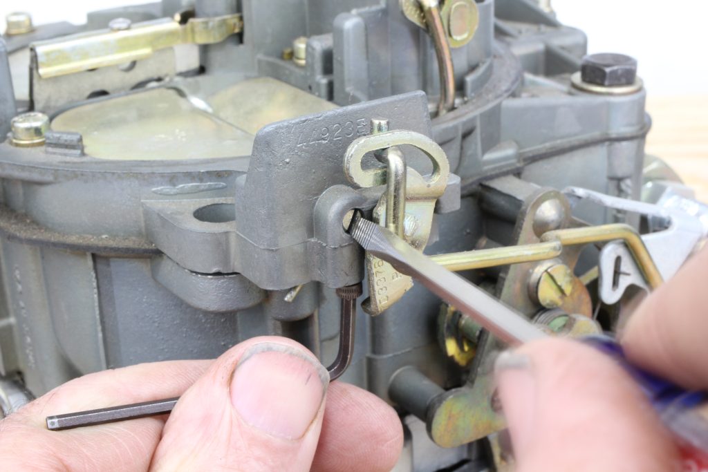 Rochester engineers knew that larger engines would want the secondaries to open sooner compared to smaller engines, so they made the tension spring adjustable. This allows the end user to custom set the point at which the air valve door opens. This is accomplished by accessing the air valve door spring adjuster. This is a small, straight screwdriver blade adjuster screw located on the passenger side of the lid in line with the secondary air valve door shaft.