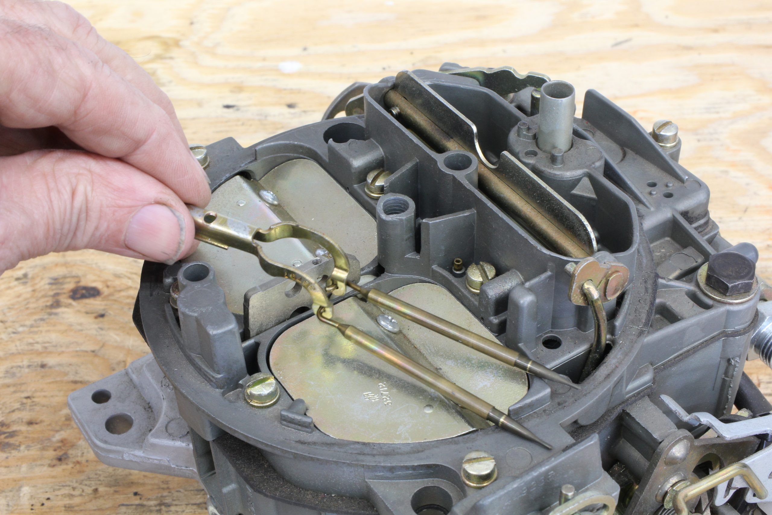 If you want to go farther into Q-jet tuning, you can also try experimenting with the secondary jetting by changing the secondary metering rods and/or the hanger. If you look closely at the hanger, you will notice a single letter stamped on the top. This letter indicates how much the hanger lifts the metering rods out of the fixed jets in the main body of the carburetor.
