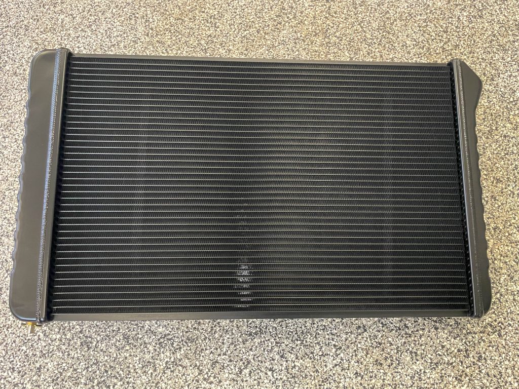 DeWitts makes high-capacity downflow radiators for cars and trucks that were factory-equipped with one. They’re direct-fit so they’re a drop-in installation. Paint one black and no one needs to know its aluminum.