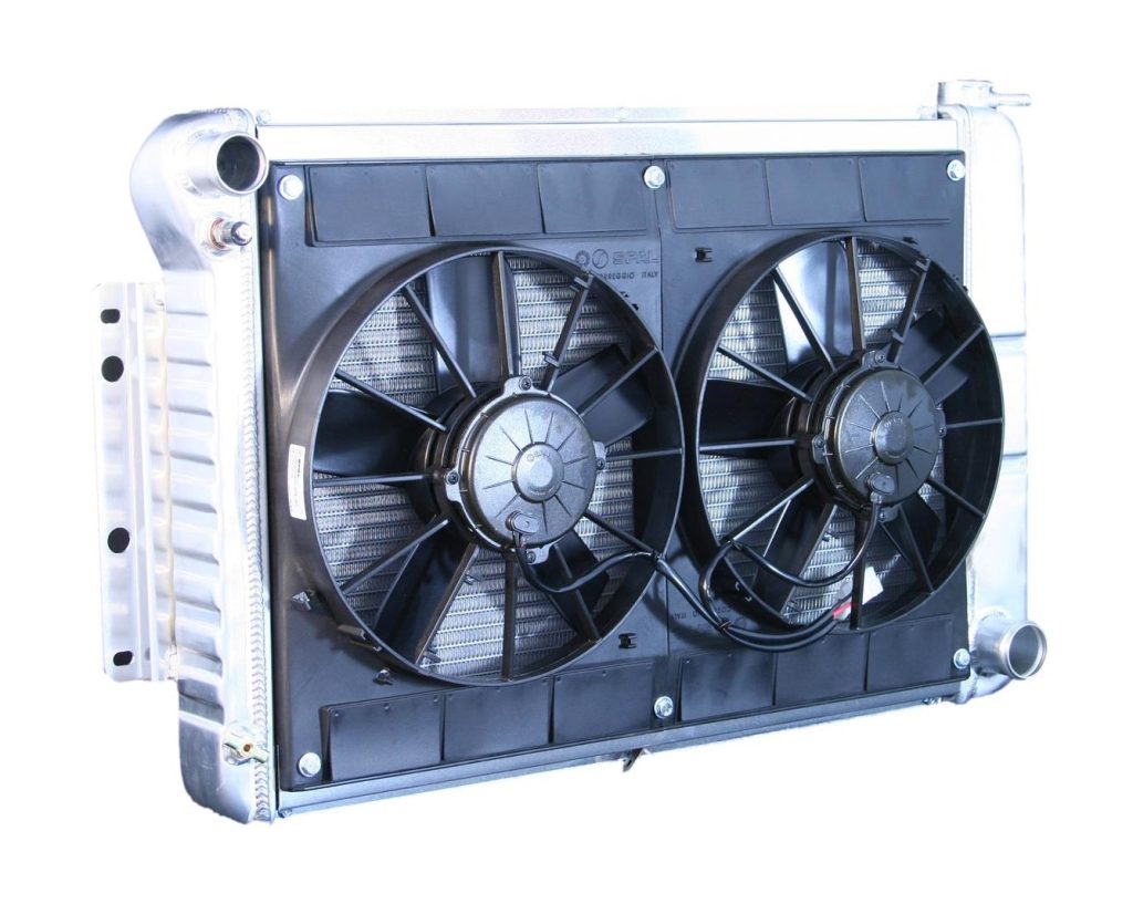 Most cars through the 1960s, classic trucks, and many muscle cars used downflow radiators. Crossflow radiators were adopted in the late 1960s and early 1970s to accommodate lower hood profiles.