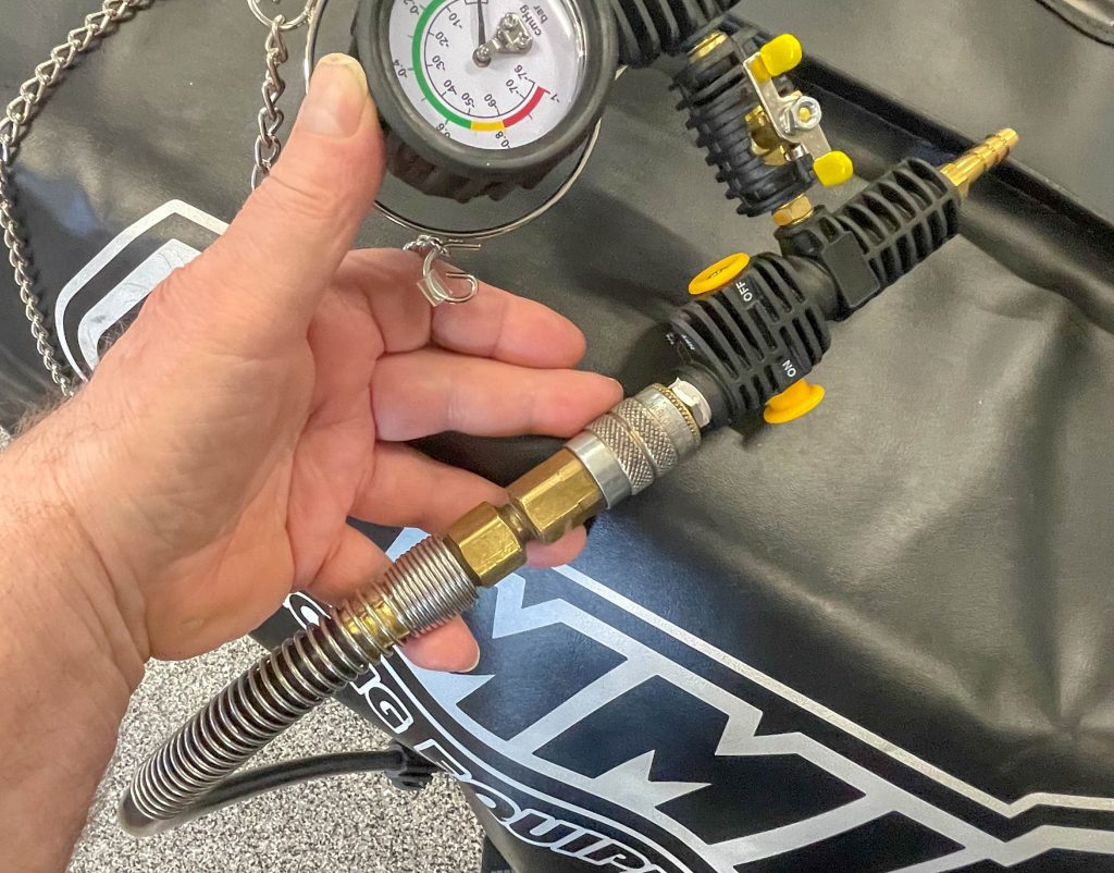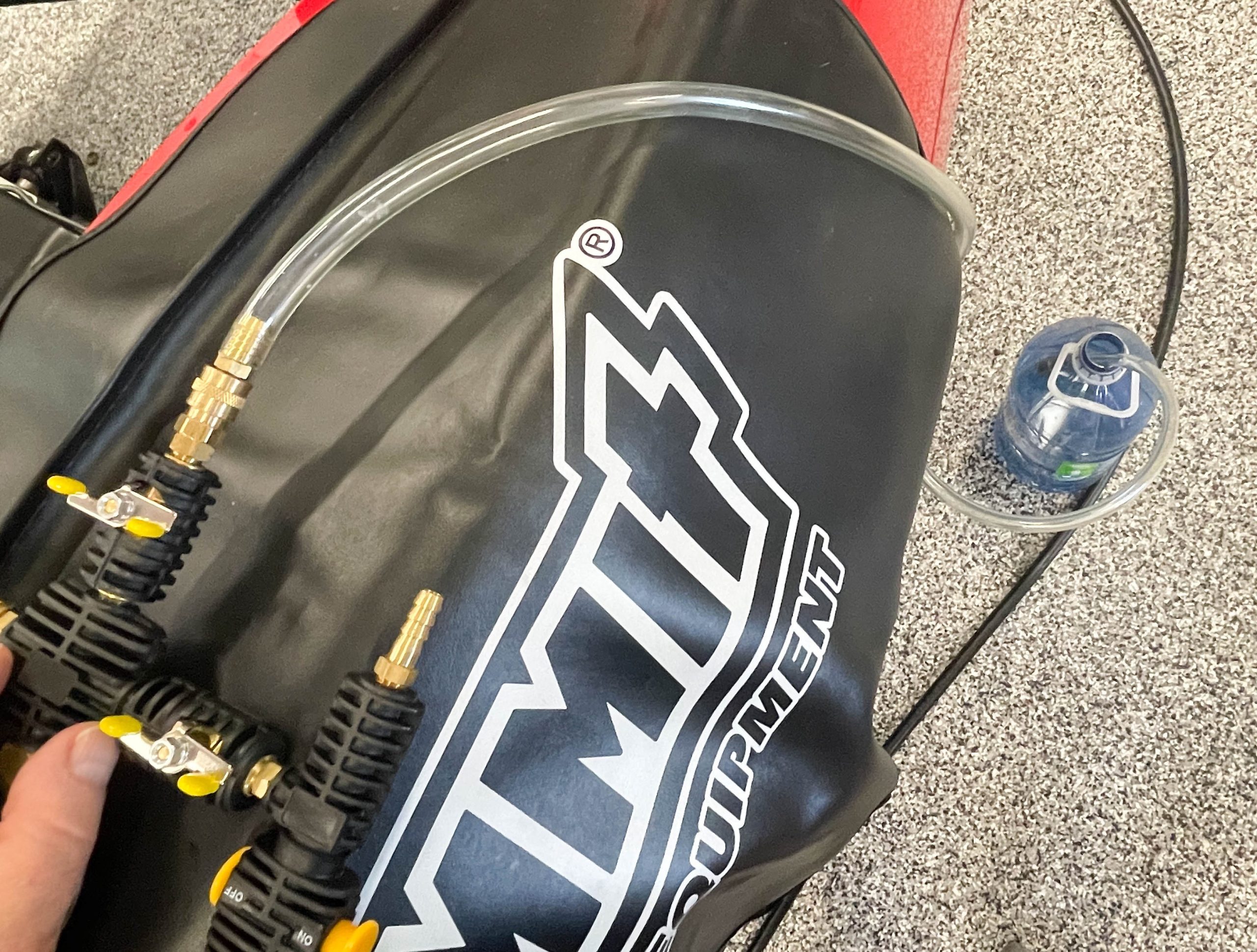 Purging and refilling is pretty simple too, but you’ll need an air compressor. The tool creates a venturi effect, essentially introducing a vacuum in the vehicle cooling system. This draws in coolant with little or no chance of creating air bubbles.