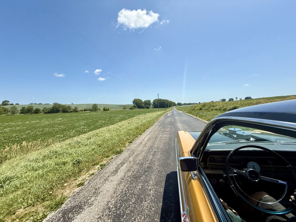 Unfortunately, our hopes dipped as we pulled into Effingham, Illinois, fearing the worst for our time for the day. However, we knew our calculations were true and we were prepared to do our best for our next leg. The last thing we expected was a thunderstorm which would slow and halt our train of classic cars, sending semi-trucks into low-visibility passes. When we pulled back out on the road, our stopwatch showed 1:30 as the time allowance we should take. We crossed our fingers and hoped for the best.