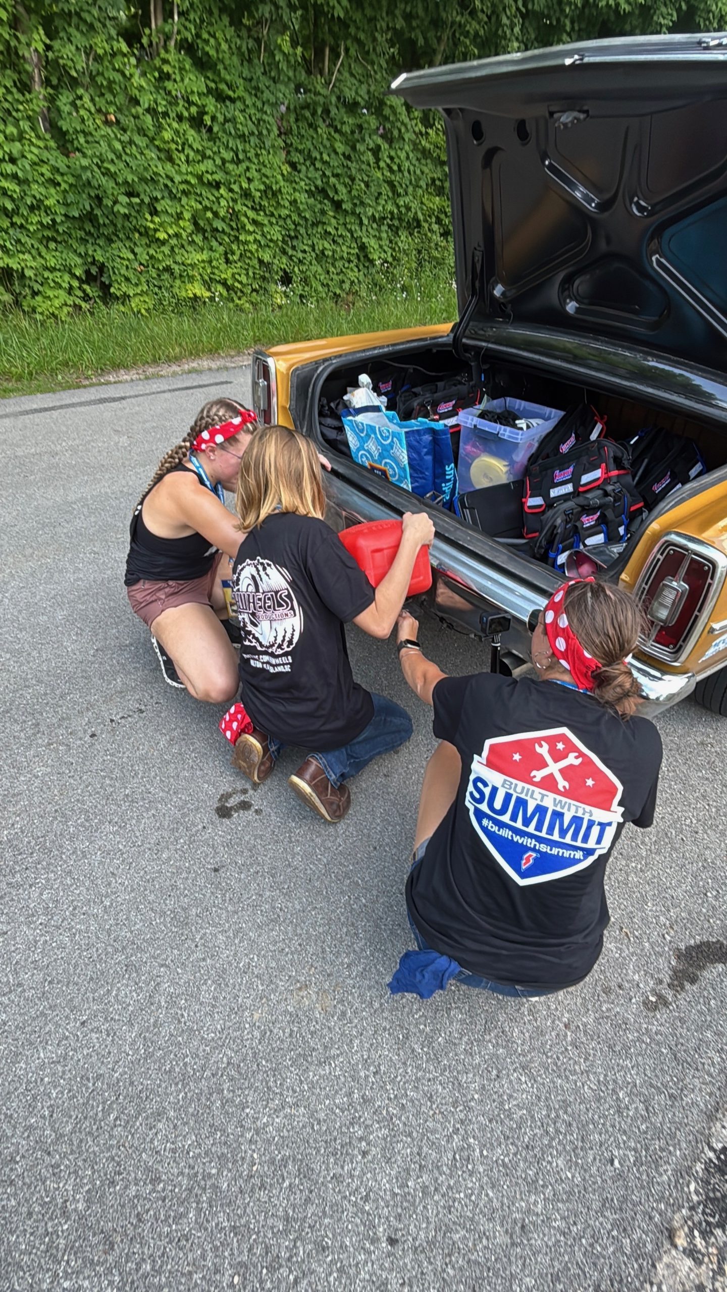 We made good time throughout the route and were feeling strong coming into the final stretch. That’s when disaster struck. Less than a mile from the finish line, the Fairlane sputtered and died. We suspected a fuel issue, and sure enough, the engine wouldn’t stay alive under throttle. In true rally fashion, the women jumped out and pushed the car the last quarter mile—across the finish line with grit and laughter.