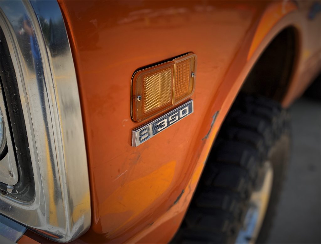 While you had a handful of engine options in 1972, the “350 – 8” fender emblem tells us that this one carries the trusty 350 Chevy V8. The presence of a column shift is a giveaway that there’s a TH350 behind that V8 too.