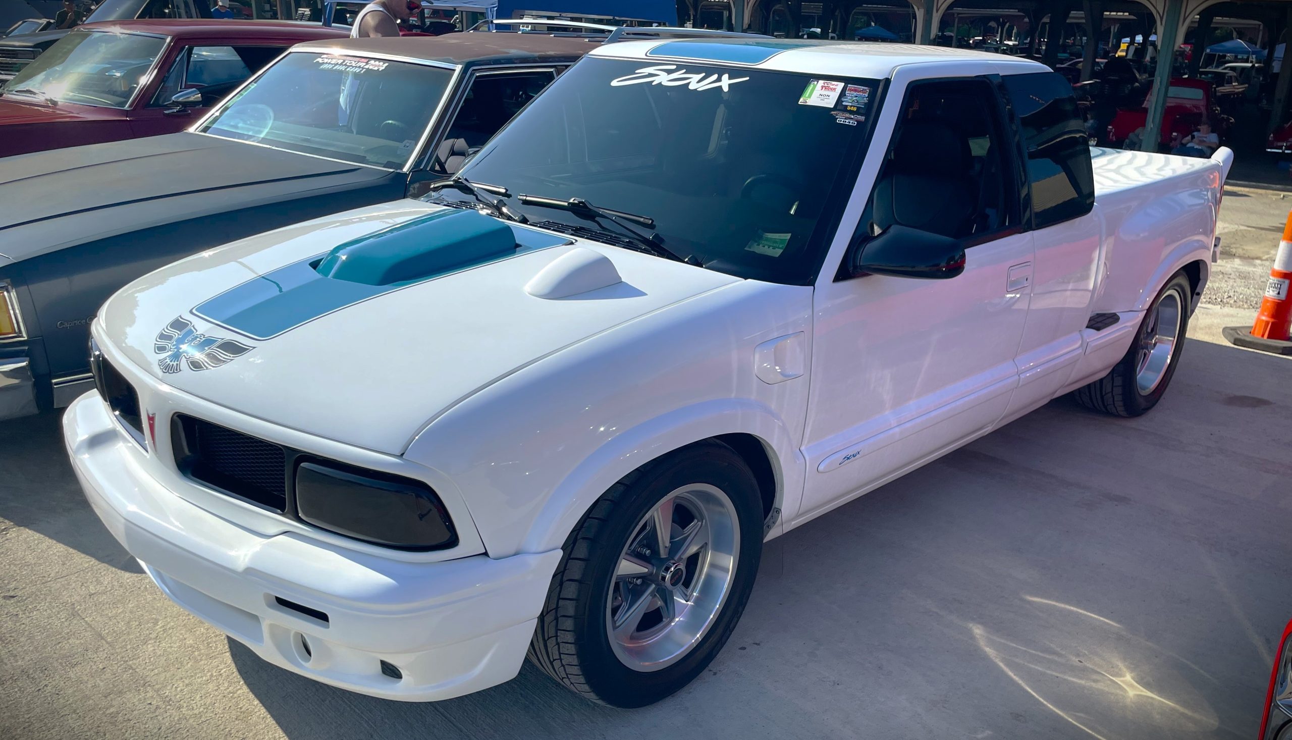 A paint-and-body guy by trade, he reveals that the original plan was for it to be his sister’s first car. But then he got the itch to turn it into a custom sport truck—starting with a grille pulled off an Oldsmobile Bravada.