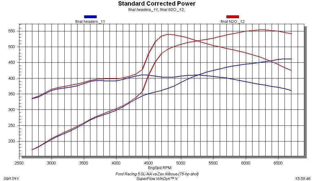 stock 5.0L coyote engine with zex nitrous system dyno chart